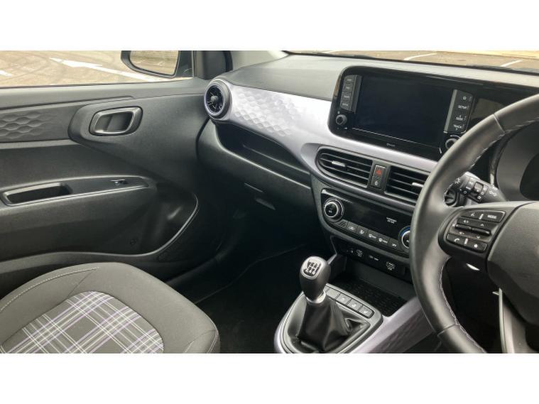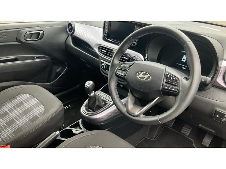 Hyundai i10 1.0 [63] Premium 5dr [Nav] Petrol Hatchback, , Discover this exceptional 2025 Hyundai i10 Premium, boasting an incredibly low mileage, making it practically new. This stylish hatchback is powered by an efficient 1.0L petrol engine, meeting Euro 6 emissions standards. Inside, you'll find a host of premium features designed for your comfort and convenience, including a heated steering wheel and heated front seats, perfect for those colder mornings. Navigating tight spaces is made easier with rear parking sensors, and staying connected on the go is simple thanks to Bluetooth connectivity with voice recognition.