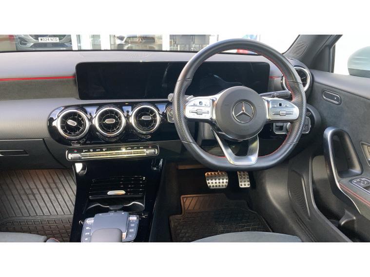 Mercedes-Benz A-Class A180 AMG Line Executive 5dr Auto Petrol Hatchback, , A premium compact hatchback that combines sophisticated design, advanced technology, and refined performance. Powered by a 1.3-litre petrol engine with automatic transmission, this A180 delivers smooth, responsive acceleration, excellent fuel efficiency, and a comfortable, engaging driving experience, making it perfect for both city commutes and longer journeys. The AMG Line Executive trim elevates its sporty and luxurious appeal with 18-inch alloy wheels, AMG styling accents, LED headlights, diamond grille, and chrome exterior detailing, giving the car a striking road presence. Inside, the cabin is finished to Mercedes-Benzs renowned high standards, featuring sports seats, a leather multifunction steering wheel, ambient interior lighting, and premium materials throughout, providing both comfort and style. Technology highlights include the MBUX infotainment system with a 10.25-inch touchscreen, navigation, Apple CarPlay, Android Auto, Bluetooth, and DAB radio for seamless connectivity and entertainment. Additional features such as dual-zone climate control, cruise control, keyless entry, and parking sensors enhance convenience, while safety is prioritised with multiple airbags, lane-keeping assist, and electronic stability control. Presented in excellent condition with low mileage and full service history, this Mercedes-Benz A-Class AMG Line Executive Auto offers exceptional value.