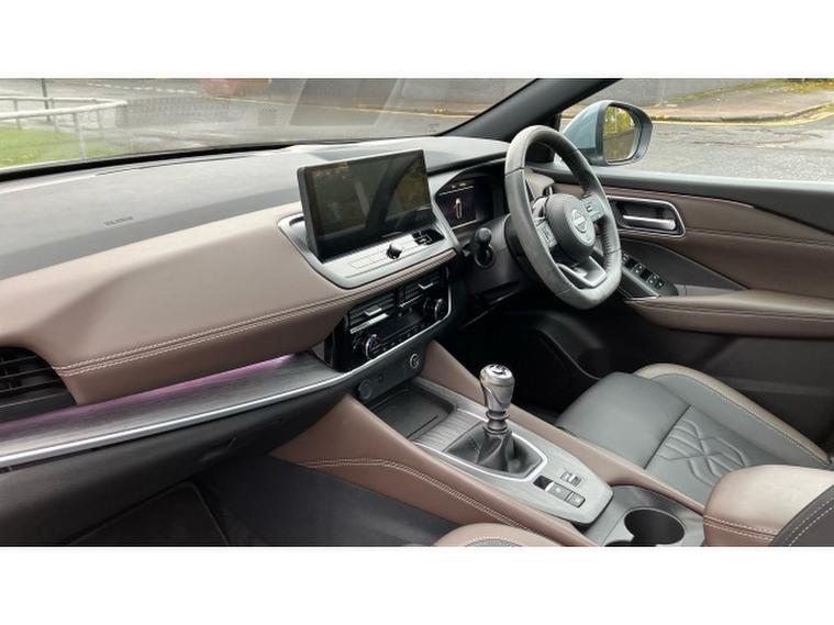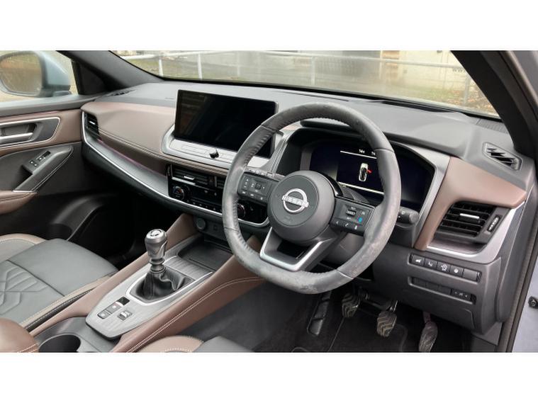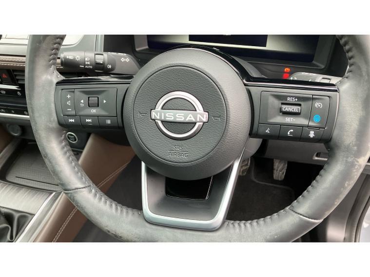 The Tekna trim comes generously equipped with premium touches including sleek LED headlights, striking alloy wheels, and a panoramic glass roof that floods the interior with natural light. Inside, the cabin boasts heated leather seats, a heated steering wheel, and dual-zone climate control, ensuring a comfortable environment whatever the weather. The 12.3-inch digital driver display and NissanConnect infotainment system with built-in navigation, Apple CarPlay, Android Auto, and voice control provide seamless connectivity and easy access to your favourite apps and driving information.