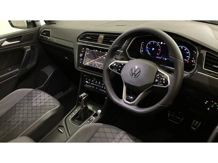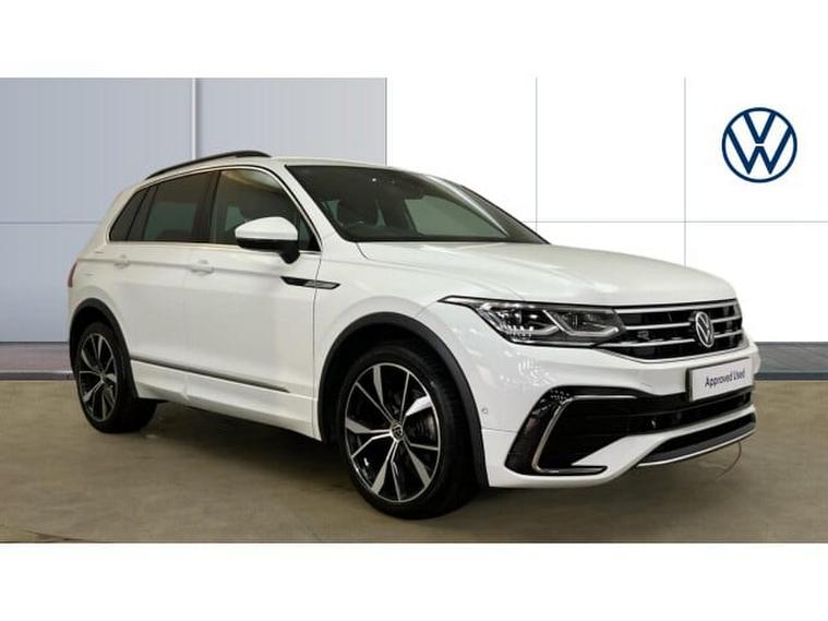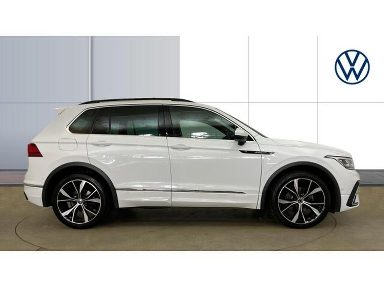 Volkswagen Tiguan 2.0 TDI R-Line 5dr DSG Diesel Estate, , The Volkswagen Tiguan R-Line 2.0 TDI 150PS 7-Speed DSG in Pure White is a confident blend of practicality and athletic design, showcasing Volkswagen's hallmark balance of refinement and capability. Its sculpted R-Line styling, subtle chrome accents and aerodynamic lines give it a poised, modern presence that feels equally at home on city streets or motorways. The R-Line body kit and distinctive alloys add a touch of sportiness that enhances the Tiguan's already impressive stance.