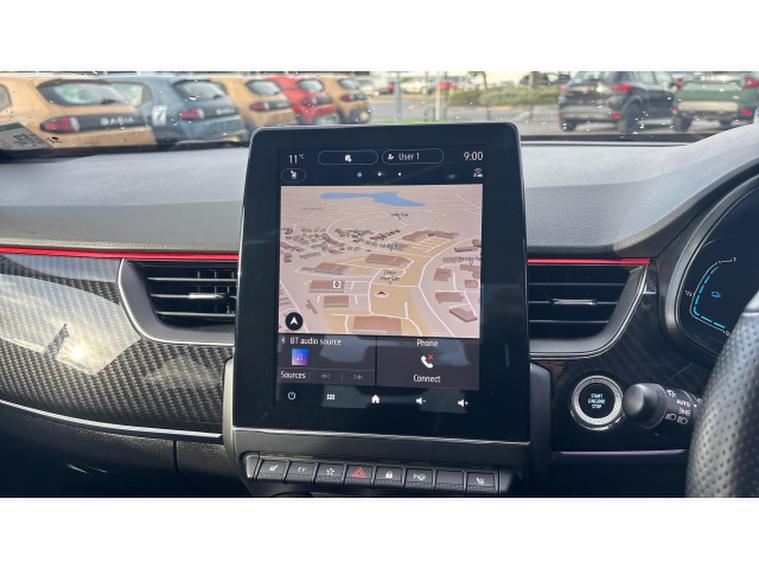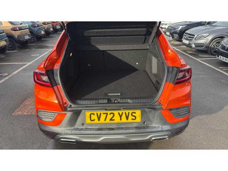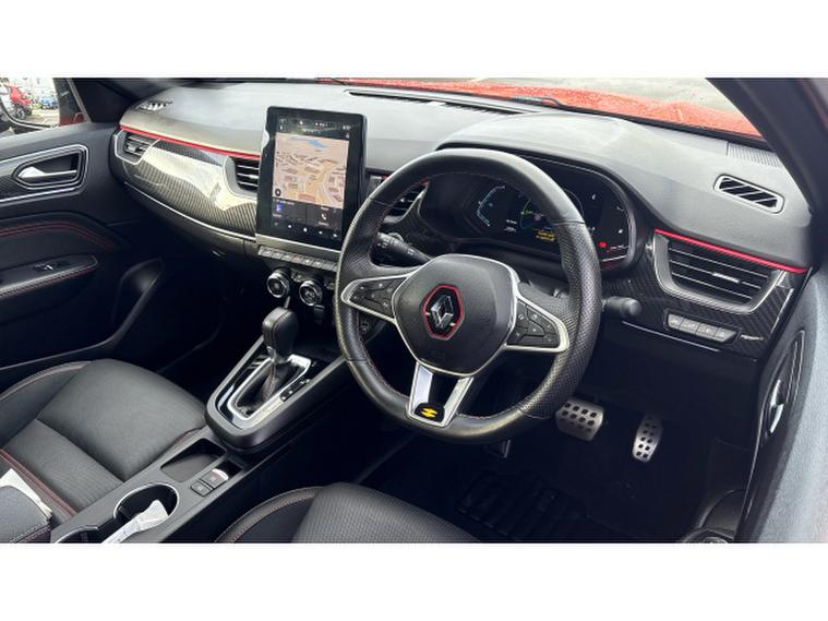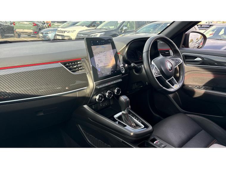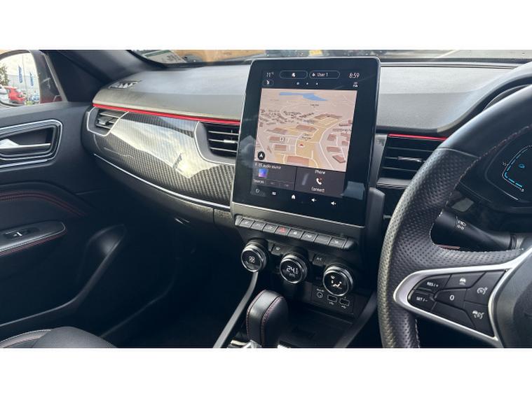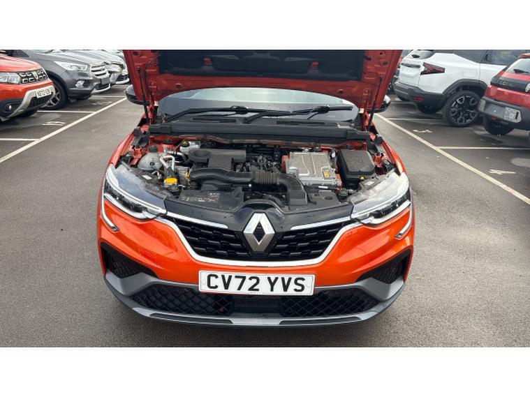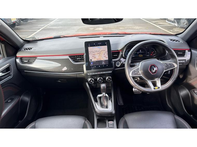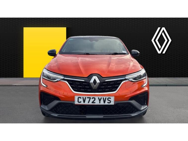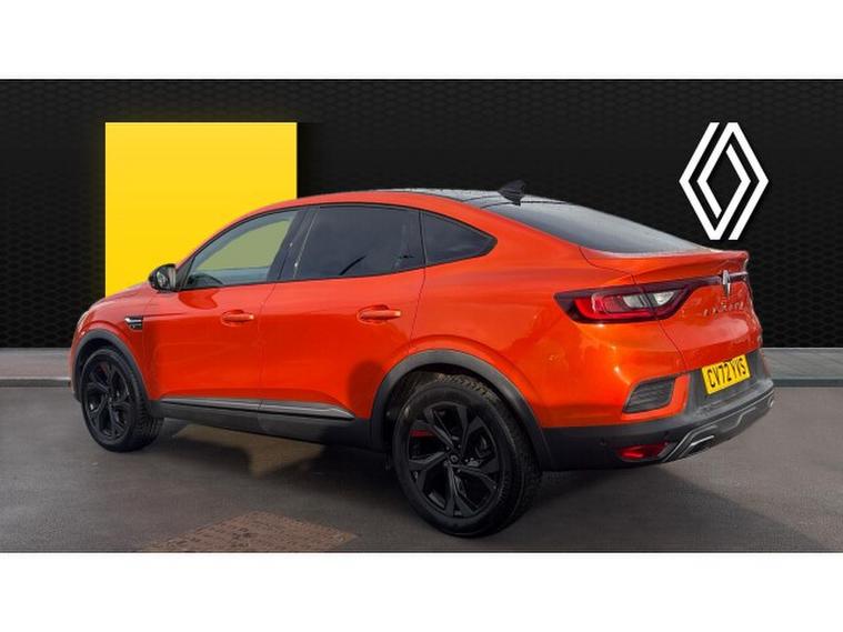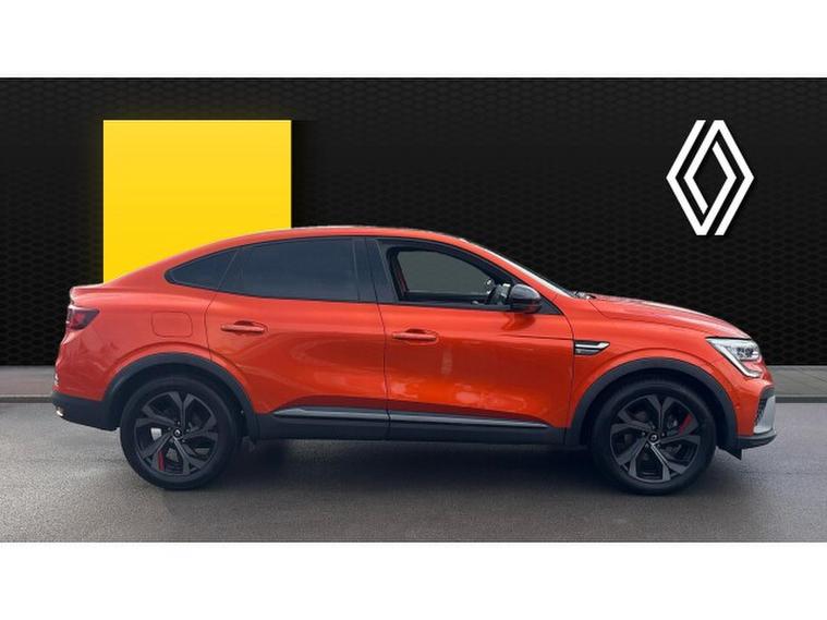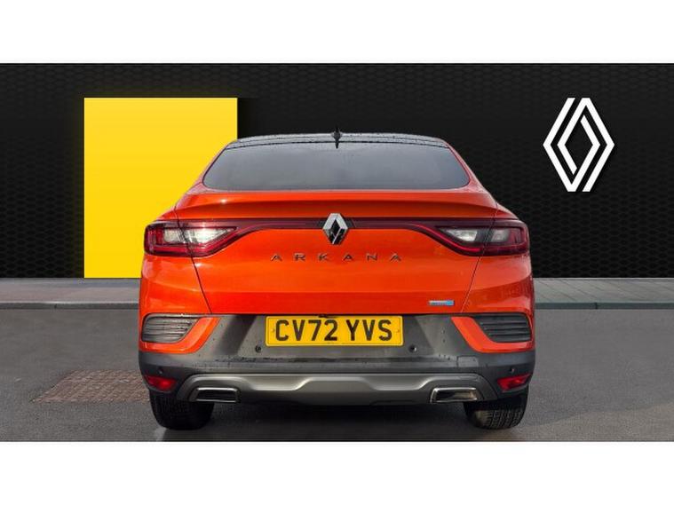 Renault Arkana 1.6 E-TECH Hybrid 145 R.S. Line 5dr Auto Hybrid Estate, , The Renault Arkana 1.6 E-TECH Hybrid 145 R.S. Line 5-door Auto is a stylish crossover that combines a 1.6-litre petrol engine with a small electric motor to give around 142145 bhp and generous torque. It delivers a 0-62 mph time of about 10.8 seconds, with a top speed near 107 mph. Its hybrid system enables a combined fuel economy in the high 50s mpg (WLTP) and CO₂, emissions roughly in the region of 110-112 g/km. The Arkana R.S. Line adds sporty design accents such as 18-inch alloy wheels with red inserts, gloss black detailing, R.S. badging, and a more aggressive bumper styling. Interior space is decent for its class, with five seats and around 480 litres of boot capacity with the rear seats up, making it a solid option for someone wanting crossover looks, better economy, and a nice spec without going fully electric.