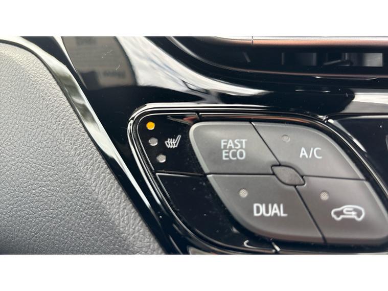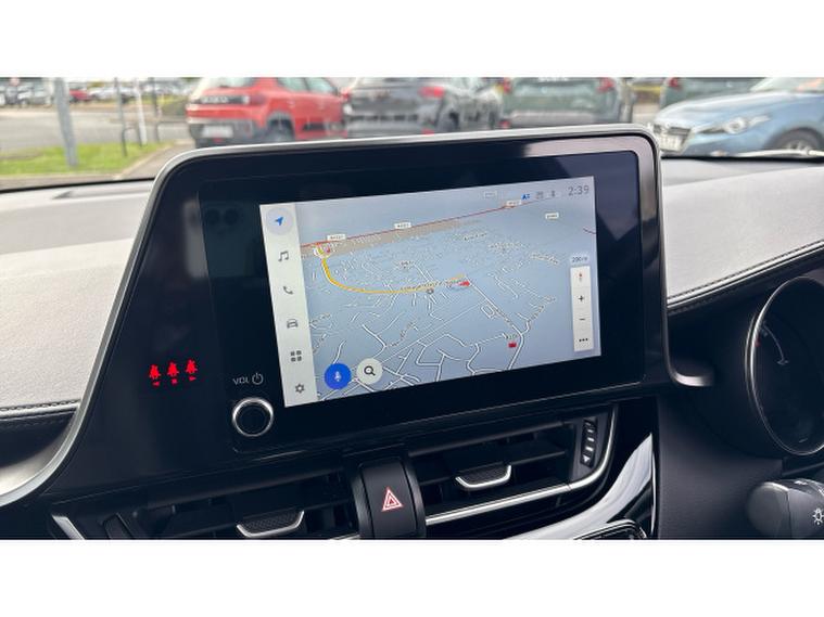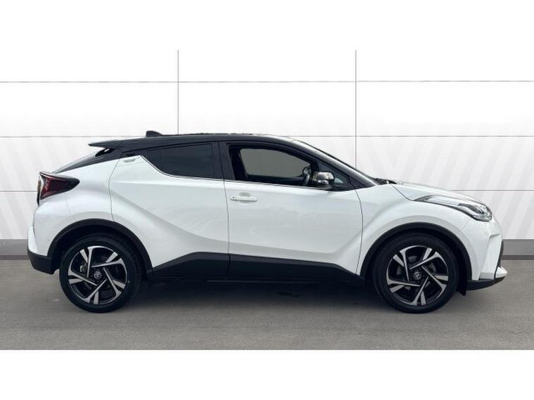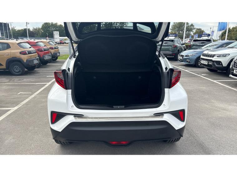 Toyota C-HR 1.8 Hybrid Design 5dr CVT Hybrid Hatchback, , The Toyota C-HR 1.8 Hybrid Design 5-door CVT is a stylish compact crossover that combines a sleek, modern exterior with hybrid efficiency and a well-appointed interior. It is powered by a 1.8-litre self-charging hybrid system delivering around 140 bhp, paired with an e-CVT transmission. It can accelerate from 0-62 mph in about 10.2 seconds and reaches a top speed of approximately 106 mph. Measuring 4, 362 mm in length, 1, 832 mm in width and 1, 564 mm in height, with a wheelbase of 2, 640 mm, it offers a balanced mix of style and practicality. Luggage capacity stands at around 447 litres, while the kerb weight of 1, 435 kg gives it a substantial feel without being too heavy. Fuel economy is impressive at around 58.9 mpg (WLTP combined) with CO₂, , emissions of roughly 108 g/km, making it efficient for daily use. The Design trim enhances the package with 18-inch alloy wheels, heated front seats, rear privacy glass, smart entry, auto-folding mirrors, rain-sensing wipers, navigation, and upgraded interior details, creating a refined and comfortable driving experience.