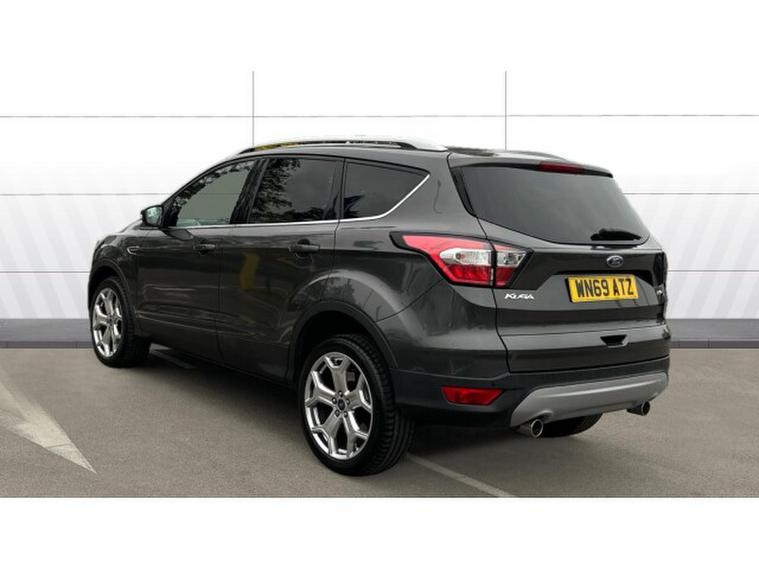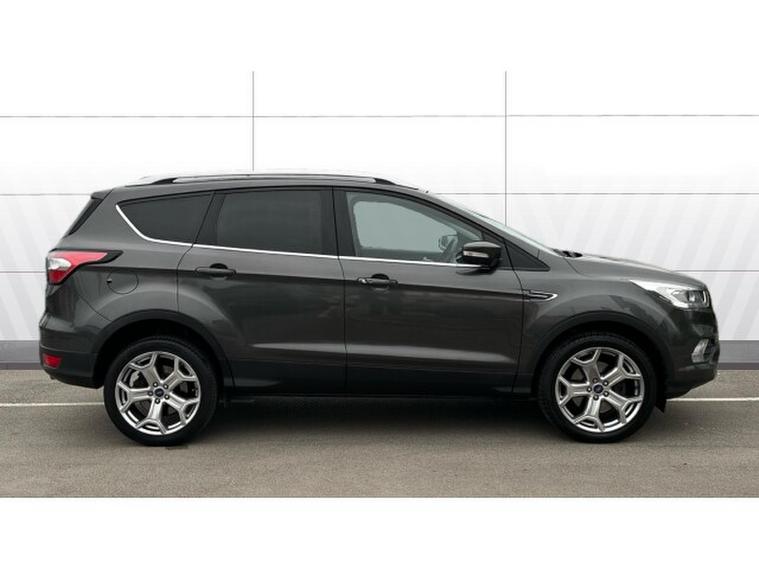 Ford Kuga 2.0 TDCi 180 Titanium Edition 5dr Auto Diesel Estate, , The Ford Kuga Diesel Estate 2.0 TDCi 180 Titanium Edition 5dr Auto is a refined and practical compact SUV, ideal for families and long-distance drivers. Equipped with a 2.0-litre EcoBlue diesel engine producing 180 PS and 400 Nm of torque, it delivers a 062 mph time of approximately 9.2 seconds and a top speed of 124 mph. The eight-speed automatic transmission ensures smooth gear shifts, while the all-wheel-drive system provides enhanced traction and stability. With a kerb weight of around 1, 627 kg and a gross vehicle weight of 2, 250 kg, the Kuga offers a towing capacity of up to 2, 100 kg. Inside, the Titanium Edition trim boasts features such as 18-inch alloy wheels, LED daytime running lights, automatic LED headlights, and tinted rear windows. The cabin is well-appointed with a leather-trimmed steering wheel, dual-zone air conditioning, and a wireless phone charging pad. With a boot capacity of 406 litres and a length of 4, 531 mm, the Kuga provides ample space for luggage and passengers. Overall, the Ford Kuga 2.0 TDCi 180 Titanium Edition 5dr Auto combines performance, practicality, and comfort, making it a strong contender in the compact SUV segment.
