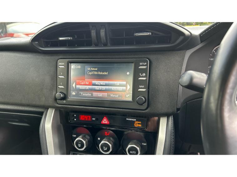 The Pro trim enhances the GT86s appeal with stylish 17-inch alloy wheels, LED headlights, and a purposeful coupe design that stands out on the road. Inside, the cabin features supportive black half-leather sports seats with Alcantara inserts, a multifunction steering wheel, and dual-zone climate control for added comfort. The touchscreen multimedia system with Bluetooth, DAB radio, and USB connectivity ensures every journey is as connected as it is enjoyable.