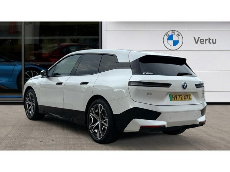 BMW iX 385kW xDrive50 M Sport 111.5kWh 5dr Auto Electric Estate, , Available now is this exceptional 2022 BMW iX xDrive50 M Sport, finished in sophisticated Mineral White with the luxurious Interior Design Suite Amido seats. With just 13, 574 miles on the clock, this all-electric SUV delivers a perfect balance of cutting-edge technology, dynamic performance, and refined comfort. When purchasing from Vertu BMW Exeter, you can buy with total confidence as all our Approved Used BMWs benefit from 12 Months BMW Approved Warranty, 12 Months BMW Roadside Assistance, 12 Months MOT, and a full service history. Every vehicle is thoroughly inspected by our manufacturer-trained technicians to ensure it meets the highest standards of quality, giving you complete peace of mind. Choosing Vertu BMW Exeter means enjoying expert guidance, excellent customer service, and trusted aftersales care. To help you get to know this stunning BMW iX even better, our team is happy to provide a personalised video presentation tailored to your request, showcasing the vehicles features and answering any questions you may have. This particular iX xDrive50 M Sport comes equipped with a range of premium features designed to enhance every drive, including front and rear heated seats that keep you warm and comfortable on cooler days, a Driving Assistant system that delivers advanced safety and driver assistance functions, and the breathtaking Sky Lounge Panoramic Roof that floods the cabin with natural light and creates a truly airy, premium atmosphere. Experience the future of luxury electric driving today with this incredible BMW iX xDrive50 M Sport at Vertu BMW Exeter. Contact us now to arrange your personal presentation.