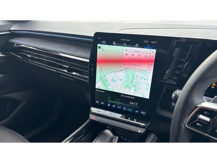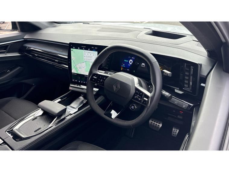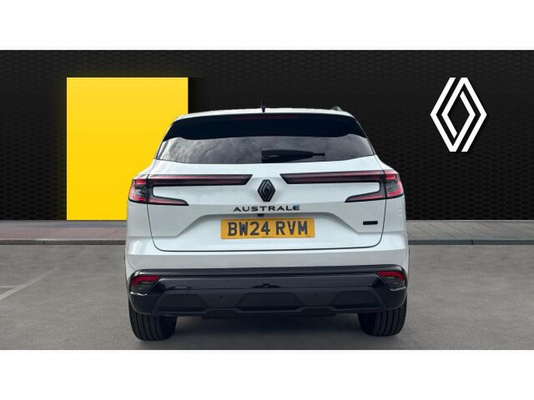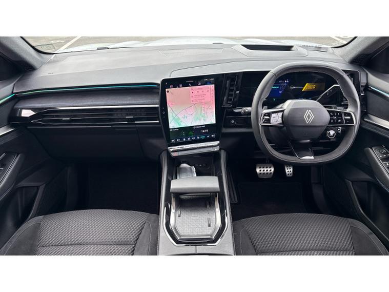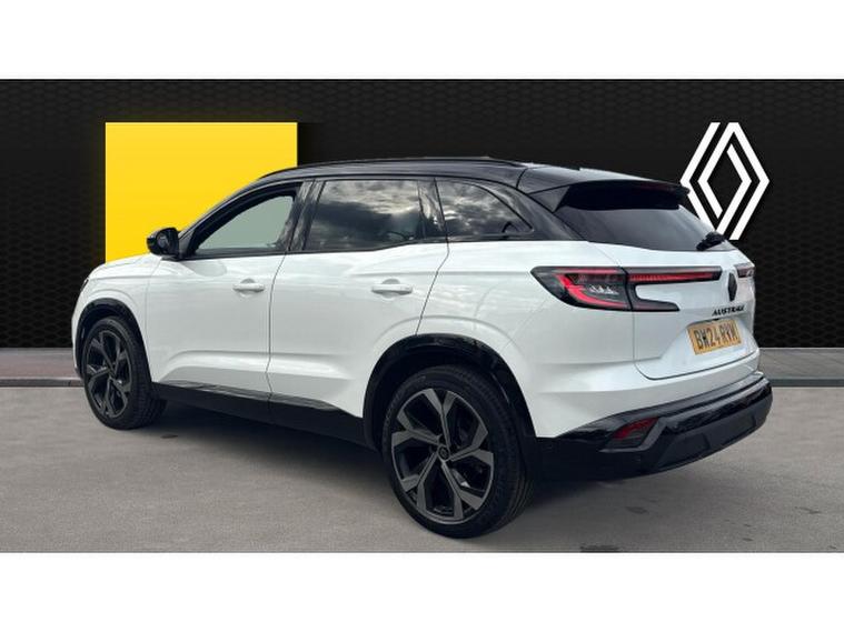 Renault Austral E-Tech FHEV Techno Esprit Alpine 5dr Auto Hybrid Estate, , The Renault Austral E-Tech FHEV Techno Esprit Alpine 5-door Auto is a sophisticated hybrid estate delivering about 200 bhp from a turbocharged 1.2-litre petrol engine assisted by electric motors, all through an automatic transmission. It dispatches 0-62 mph in approximately 8.4 seconds, with a top speed of about 108 mph, yet manages to remain efficient with a combined fuel consumption around 60 mpg and CO₂, emissions near 106 g/km. Its fairly large, measuring around 4, 510 mm long and 1, 843 mm wide, with a wheelbase of 2, 667 mm, and weighs in at about 1, 696 kg. Practicality is strong: boot space is about 487 litres with the seats up (expanding to over 1, 500 litres when folded), and theres room for five passengers. On the trim side, the Techno Esprit Alpine adds sporty styling touches such as 20-inch Daytona alloy wheels, Alcantara/ carbon fabric upholstery with vivid blue contrast stitching, heated front seats and heated steering wheel, power tailgate, adaptive cruise control with lane-centring, as well as a generous suite of driver aids and modern infotainment.