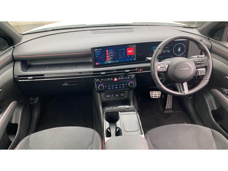 Hyundai TUCSON 1.6T Hybrid N Line 5dr Auto Hybrid Estate, , The Hyundai Tucson 1.6 T Hybrid N Line delivers the best of both worlds: aggressive design inspired by Hyundais N sub-brand combined with a modern hybrid powertrain for efficiency without compromise. Inside the N Line trim, youll find bold styling touches, including sporty alloy wheels, N-Style detailing to the bumpers and grille, and contrast-stitch interior accents for a dynamic look.