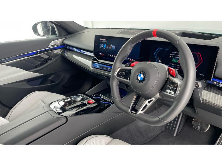 BMW M5 5dr DCT Estate, , This 2025 BMW M5 presents an exceptional opportunity with an incredibly low mileage of just 894 miles, making it virtually as new. Powered by a potent 4.4 litre petrol plug in hybrid engine, this four wheel drive saloon meets Euro 6 emission standards. Inside, you will find the impressive Bowers and Wilkins Surround Sound System, a luxury branded audio experience designed to immerse you in sound.