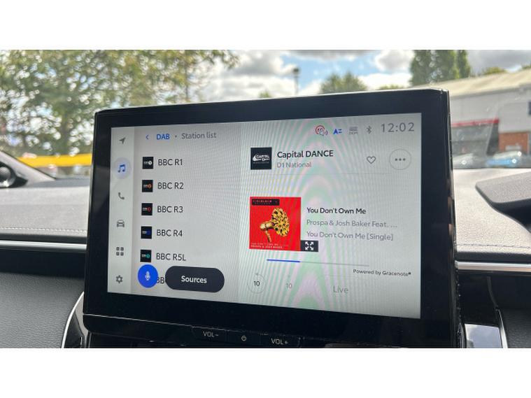 Technology highlights include a large touchscreen multimedia system with Apple CarPlay, Android Auto, Bluetooth, and DAB radio, plus a reversing camera and front and rear parking sensors. Safety is first-class thanks to Toyota Safety Sense, including adaptive cruise control, lane assist, and pre-collision detection.