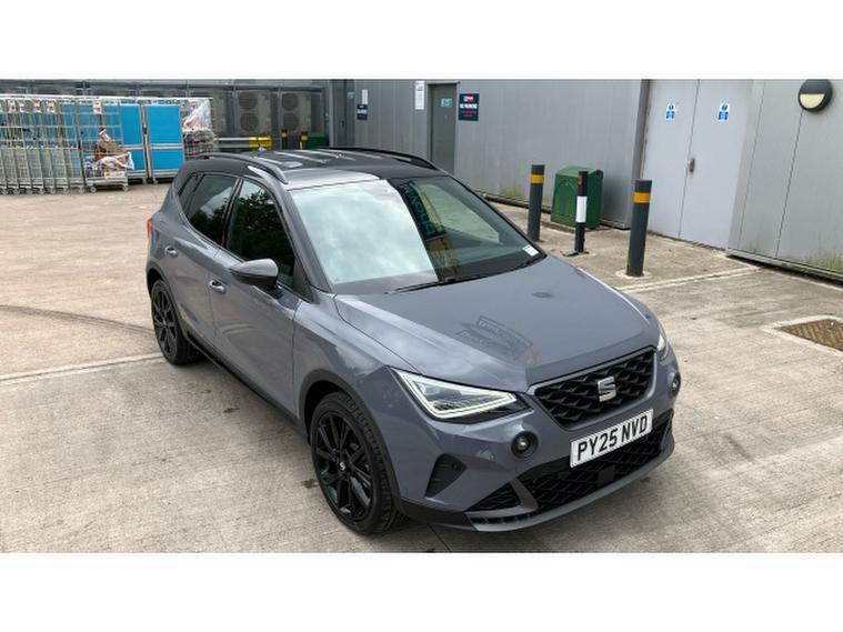 SEAT Arona 1.0 TSI 115 FR Black Edition 5dr DSG Petrol Hatchback, , The SEAT Arona 1.0 TSI 115 FR Black Edition DSG, registered in July 2025, is a polished example of how compact crossovers can combine everyday versatility with a touch of performance flair. With its crisp lines, black styling accents, and confident stance, the Arona in FR Black Edition trim exudes a sporty sophistication rare in this segment. Under the bonnet, the 1.0-litre turbocharged three-cylinder engine delivers a spirited 115PS, perfectly paired with the slick-shifting DSG automatic gearbox for a drive that is both engaging and effortless. The FR suspension setup offers composed handling without sacrificing comfort, making it equally at home on winding B-roads or the daily commute. Inside, the cabin is smartly appointed, with intuitive tech, supportive sports seats, and a clear focus on driver enjoyment. For those seeking a crossover with real character and composure, this latest Arona offers substance, style, and the sharp dynamics SEAT is rightly known for.