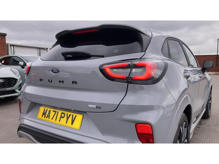 Ford Puma 1.0 EcoBoost Hybrid mHEV ST-Line X 5dr Petrol Hatchback, , A stylish and efficient compact SUV that combines mild-hybrid technology, sporty design, and practical everyday usability. Powered by a 1.0-litre EcoBoost petrol engine with mild-hybrid assistance, this Puma delivers smooth, responsive performance, excellent fuel economy, and reduced emissions, making it ideal for both city commutes and longer journeys. The ST-Line X trim enhances its sporty and premium appeal with 17-inch alloy wheels, LED headlights, ST-Line body styling, rear privacy glass, and striking exterior accents, ensuring a bold and confident road presence. Inside, the cabin is driver-focused and well-equipped, featuring part-leather sports seats, a leather-trimmed flat-bottom steering wheel, ambient lighting, and high-quality finishes throughout. Technology highlights include Fords SYNC 3 infotainment system with an 8-inch touchscreen, satellite navigation, Apple CarPlay, Android Auto, Bluetooth, and DAB radio for seamless connectivity and entertainment. Convenience features such as dual-zone climate control, keyless entry, cruise control, and rear parking sensors enhance usability, while safety is prioritised with lane-keeping assist, pre-collision assist, and multiple airbags. Presented in excellent condition with low mileage and a full service history, this 2021 Ford Puma ST-Line X offers outstanding value.