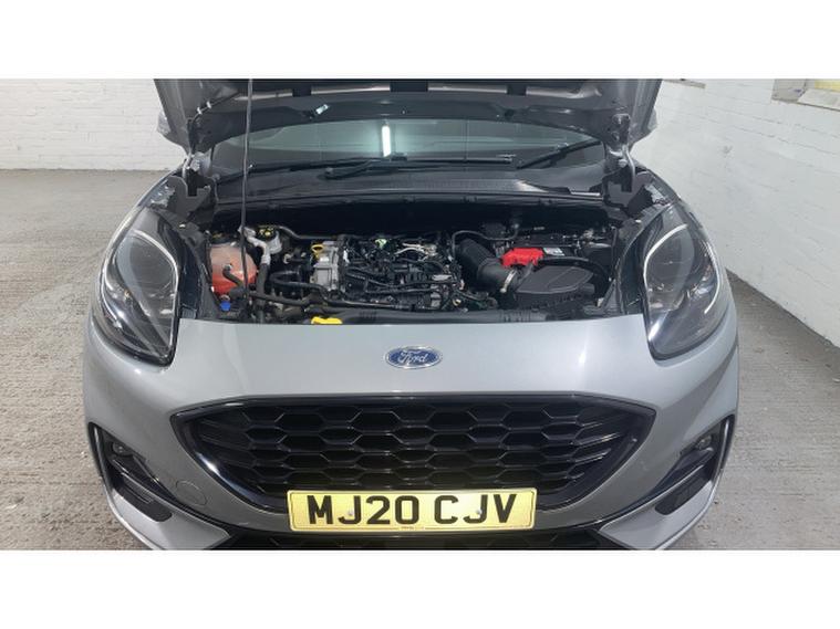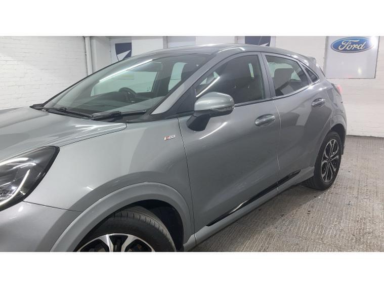 Ford Puma 1.0 EcoBoost Hybrid mHEV ST-Line 5dr Petrol Hatchback, , A sporty and efficient compact SUV that combines advanced mild-hybrid technology, dynamic styling, and practical everyday usability. Powered by a 1.0-litre EcoBoost petrol engine with mild-hybrid assistance, this Puma delivers smooth, responsive performance, excellent fuel economy, and reduced emissions, making it ideal for both urban commuting and longer journeys. The ST-Line trim enhances its sporty appeal with 17-inch alloy wheels, ST-Line body styling, rear spoiler, LED headlights, and distinctive badging, giving the car a bold and confident presence on the road. Inside, the cabin is driver-focused and well-appointed, featuring part-leather sports seats, a leather-trimmed flat-bottom steering wheel, ambient lighting, and premium materials throughout. Technology highlights include Fords SYNC 3 infotainment system with an 8-inch touchscreen, satellite navigation, Apple CarPlay, Android Auto, Bluetooth, and DAB radio for seamless connectivity and entertainment. Convenience features such as dual-zone climate control, rear parking sensors, cruise control, and keyless entry enhance usability, while safety is prioritised with multiple airbags, lane-keeping assist, and electronic stability control. Presented in excellent condition with low mileage and a full service history, this Ford Puma ST-Line offers exceptional value.