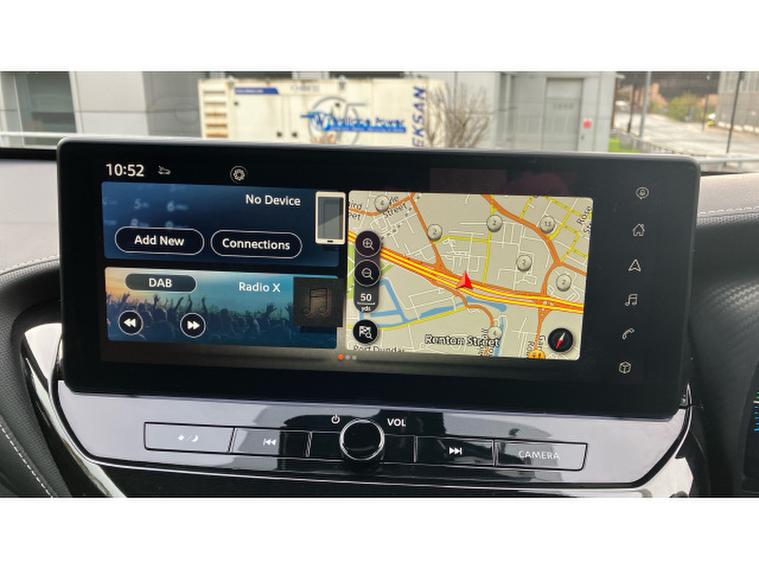 The Tekna trim stands out with its sharp, modern styling, LED signature lighting, striking alloy wheels and sleek lines that give the Juke its unmistakable presence on the road. Inside, the cabin is refined and feature-rich, offering supportive part-leather heated front seats, a leather steering wheel, and a driver-focused layout that makes every journey feel connected and comfortable. The infotainment system features an intuitive 8-inch touchscreen with built-in navigation, DAB radio, Bluetooth, Apple CarPlay and Android Auto, while the crisp digital driver display keeps essential information right in view.