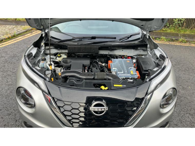 Powered by Nissans 1.6 Hybrid system, the Juke combines a petrol engine with an electric motor to deliver responsive performance with excellent fuel economy and reduced emissions. The automatic gearbox offers smooth transitions between power sources, making city driving effortless and motorway cruising quiet and efficient.