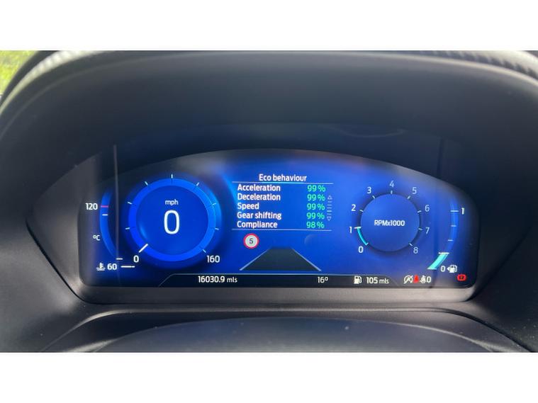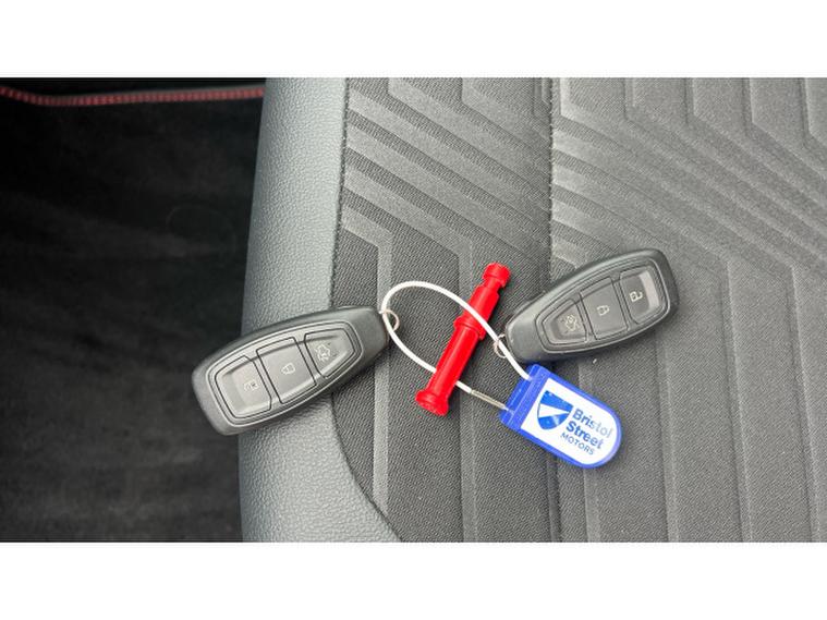 The ST-Line X trim enhances the experience with luxurious part-leather seats, heated front seats and steering wheel, and dual-zone climate control for ultimate comfort. The SYNC 3 infotainment system with Apple CarPlay and Android Auto keeps you connected and in control, while the digital instrument cluster adds a modern, high-tech feel.