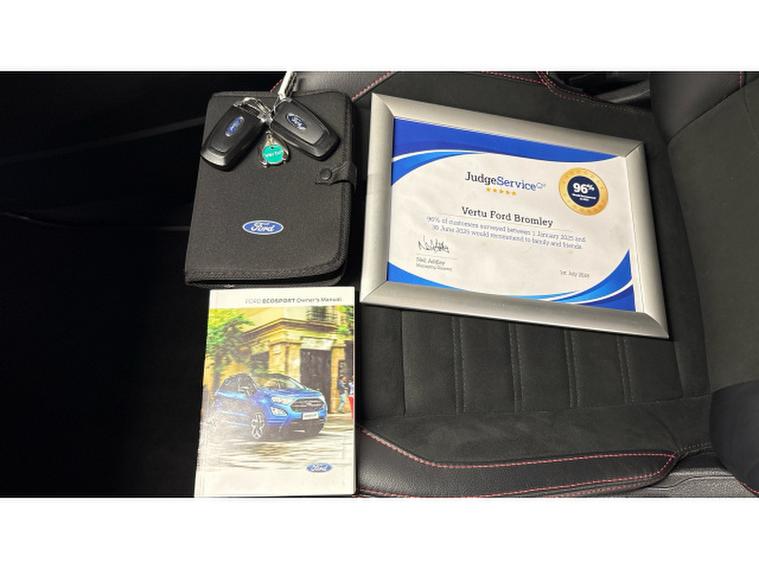 Ford EcoSport 1.0 EcoBoost 140 ST-Line 5dr Petrol Hatchback, , The 2019 Ford EcoSport is a compact SUV designed for urban agility and everyday practicality. With a bold exterior and swing-out rear tailgate, it offers a distinctive look in a crowded segment. Available in trims like S, SE, SES, and Titanium, the EcoSport caters to a range of drivers seeking value, comfort, and technology. All our vehicles at Vertu come fully prepared with our peace of mind Main Dealer guarantee. Every vehicle is fully prepared both mechanically and cosmetically up to the highest standard which even includes having any tyre replaced that has less than 3mm tread depth (legal limit is 1.6mm). Every vehicle will have a minimum of 9 months MOT remaining and you will not have to service the vehicle for at least 6 months or 6000 miles. We ensure that you will have a minimum of 2 keys and to give you even further reassurance we also supply you with a 3 months complimentary warranty and a 14-day money back guarantee. Our vehicles also come with a full HPI vehicle check assuring you that your new vehicle will have no registered accident claims reported, or any outstanding finance, it also shows the vehicle has not been imported. In addition to this we also do a full Government VOSA report check to verify the mileage on all cars over 3 years old. This service comes free of charge to all our customers unlike other main dealers who charge you an admin fee for this service. We also offer nationwide delivery on all our vehicles, so call today to arrange a viewing / test drive and let one of our professional sales executives give you the Vertu experience. Recommend booking in advance so we can ensure this vehicle is available due to our high stock turnover to avoid disappointment. We can be found on Masons Hill, Bromley.