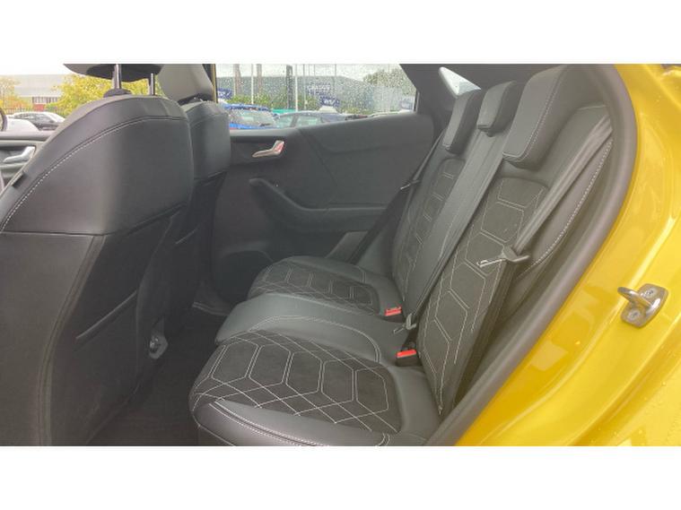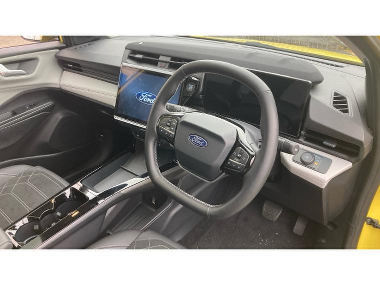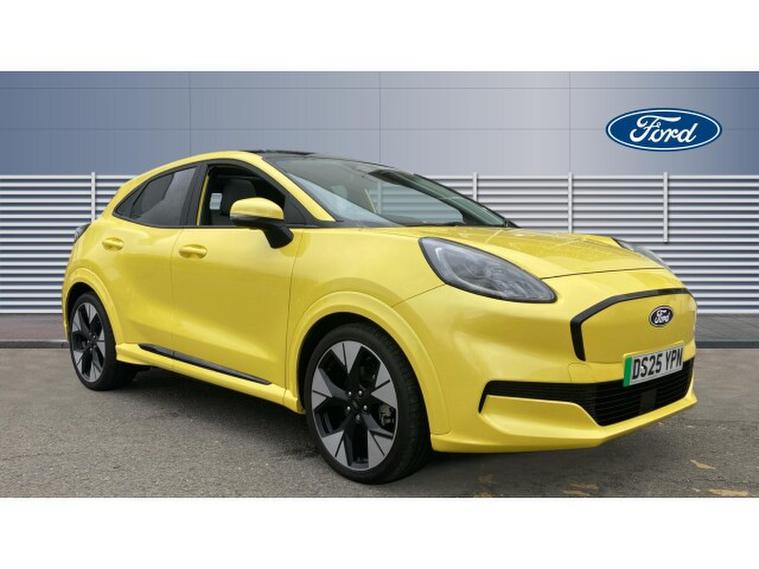 Ford Puma 123kW Premium 43kWh 5dr Auto Electric Hatchback, , This Puma Gen-E is finished in the appropriately named 'Electric Yellow' and looks fantastic with the upgraded 19 inch diamond cut alloys and dark rear privacy glass. It has been optioned with the stunning panoramic roof which brings light into the cabin and can be opened for fresh air. Rear sensors and reverse camera make parking nice and easy. The cabin offers a wireless charging slot for your phone and heated seats and steering wheel for ultimate comfort. The famous heated windscreen is also present and is a godsend on frosty mornings as it makes clearing the windscreen so much quicker and easier. The central touchscreen boasts Apple CarPlay/Android Auto, sat nav, DAB and Bluetooth so you can always find the best route and listen to your favourite music along the way. Auto lights, auto wipers and cruise control all help take the hassle out of day to day driving.