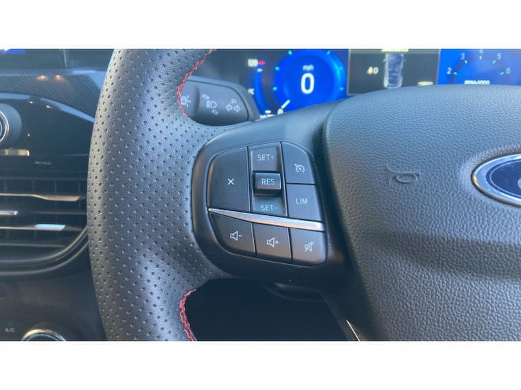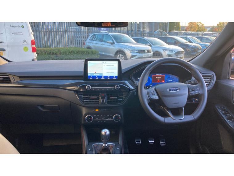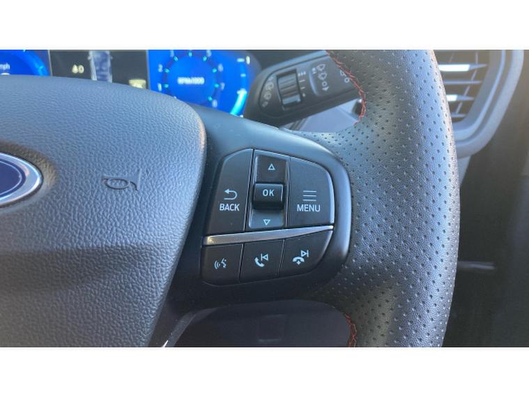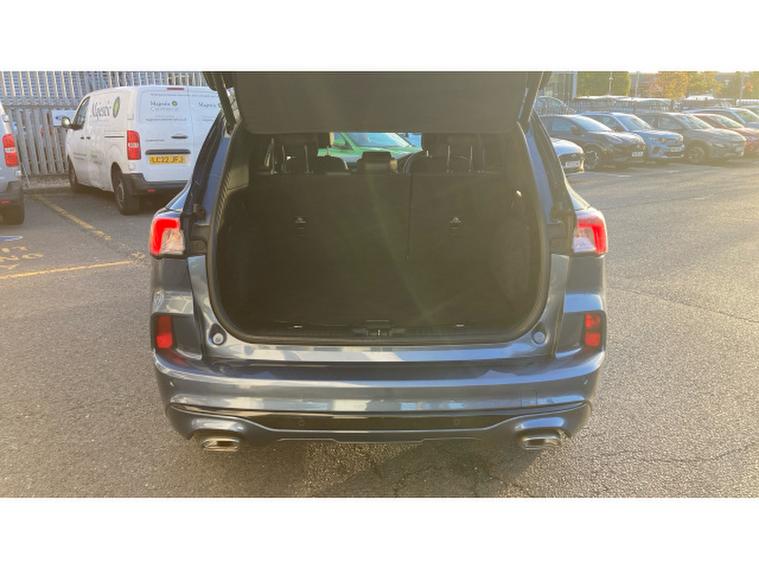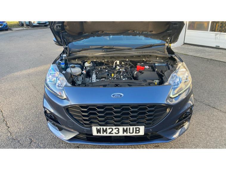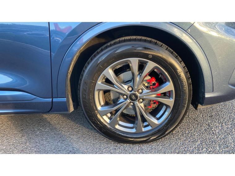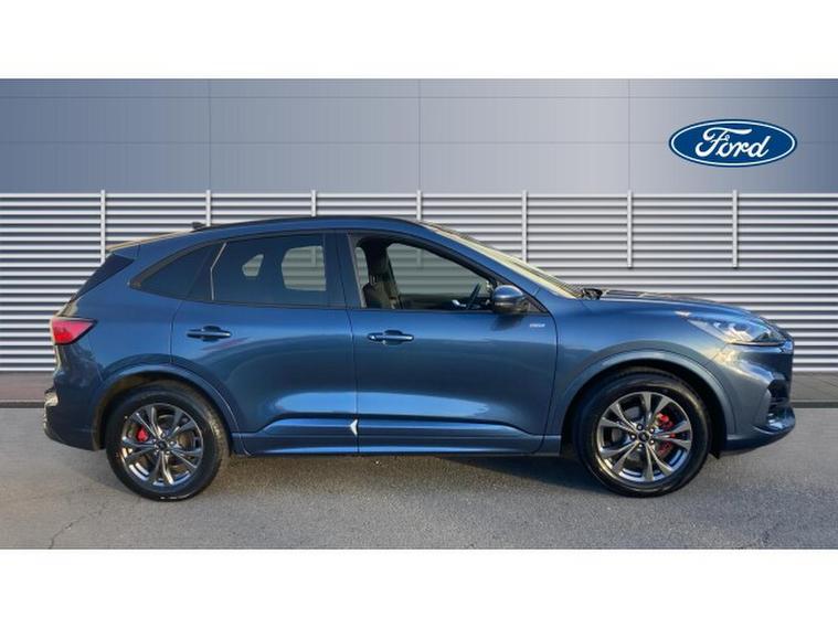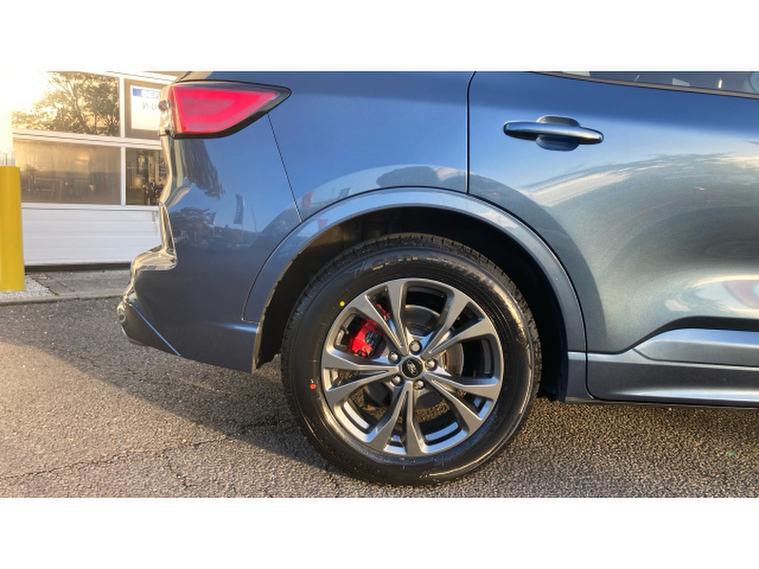 Ford Kuga 1.5 EcoBoost 150 ST-Line Edition 5dr Petrol Estate, , This Kuga ST-Line comes in the classy 'Chrome Blue' and has a host of handy features. Front and rear sensors are complimented by a reverse camera for ultimate ease when parking. The tailgate opens electrically from the key or a button in the cabin for easy access when your hands are full. The touchscreen boats Apple CarPlay/Android Auto, sat nav, DAB and Bluetooth so you can enjoyr your favourite music whilst picking the fastest route to your destination. There is a slot for your phone that not only keeps it secure but will wirelessly charge it. Standard features include auto lights, auto wipers and cruise control for hassle free day to day driving. The famous heated windscreen is a game changer on frosty mornings and will make you the envy of your neighbours when you don't have to stand in the cold scraping the windscreen.