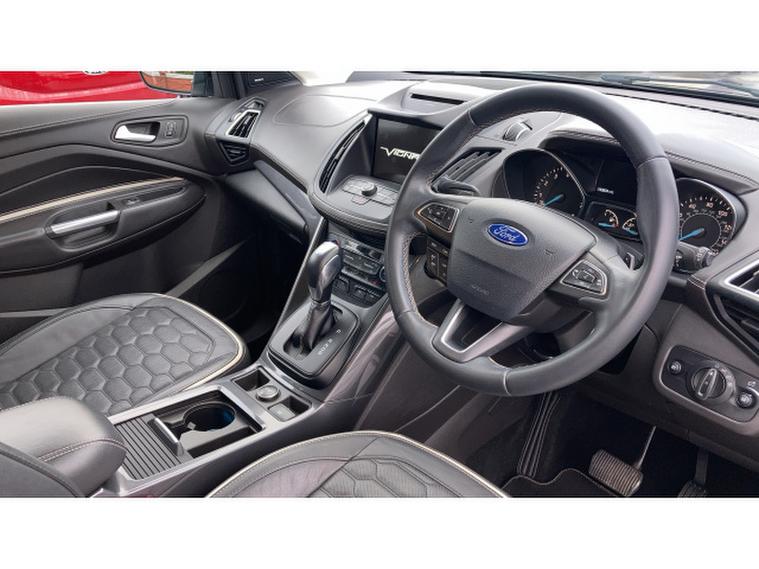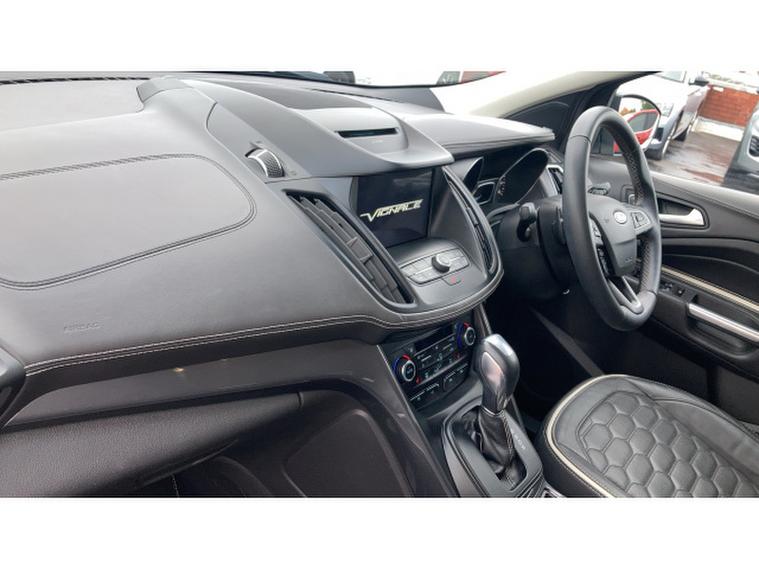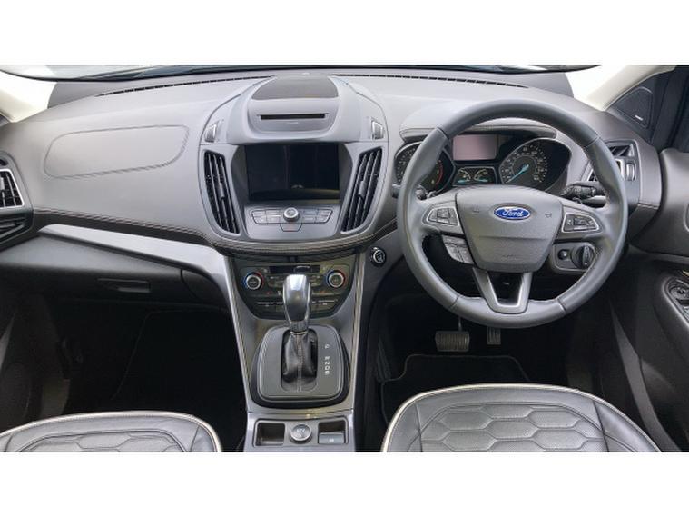 Ford Kuga Vignale 1.5 EcoBoost 176 5dr Auto Petrol Estate, , A premium compact SUV that combines refined styling, advanced technology, and efficient performance. Powered by a 1.5-litre EcoBoost petrol engine producing 176PS, paired with a smooth automatic transmission, this Kuga delivers responsive acceleration, confident handling, and excellent fuel economy, making it ideal for both city driving and longer journeys. The Vignale trim elevates its appeal with 18-inch alloy wheels, premium Vignale badging, chrome detailing, LED headlights, and a sophisticated exterior design for a commanding road presence. Inside, the cabin exudes luxury with leather-trimmed seats, heated front seats, ambient lighting, dual-zone climate control, and high-quality finishes throughout, providing comfort and refinement for driver and passengers. Technology highlights include Fords SYNC 3 infotainment system with an 8-inch touchscreen, satellite navigation, Apple CarPlay, Android Auto, Bluetooth, and DAB radio for seamless connectivity and entertainment. Additional features such as keyless entry, rear parking sensors, cruise control, and a rear-view camera enhance convenience, while safety is prioritised with lane-keeping assist, multiple airbags, and electronic stability control. Presented in excellent condition with low mileage and a full service history, this Ford Kuga Vignale offers exceptional value.