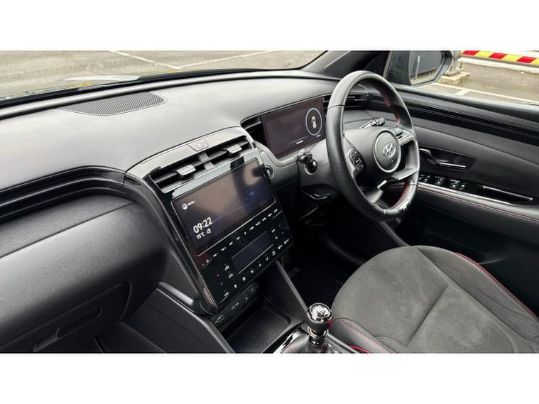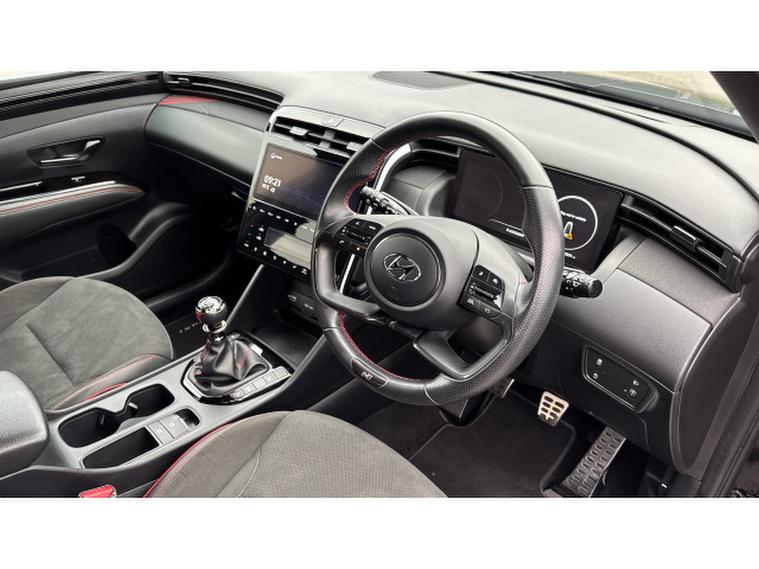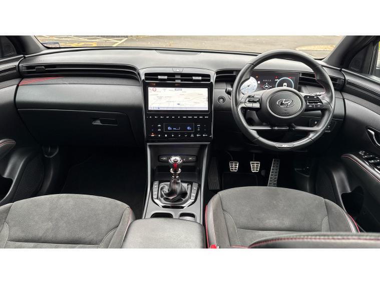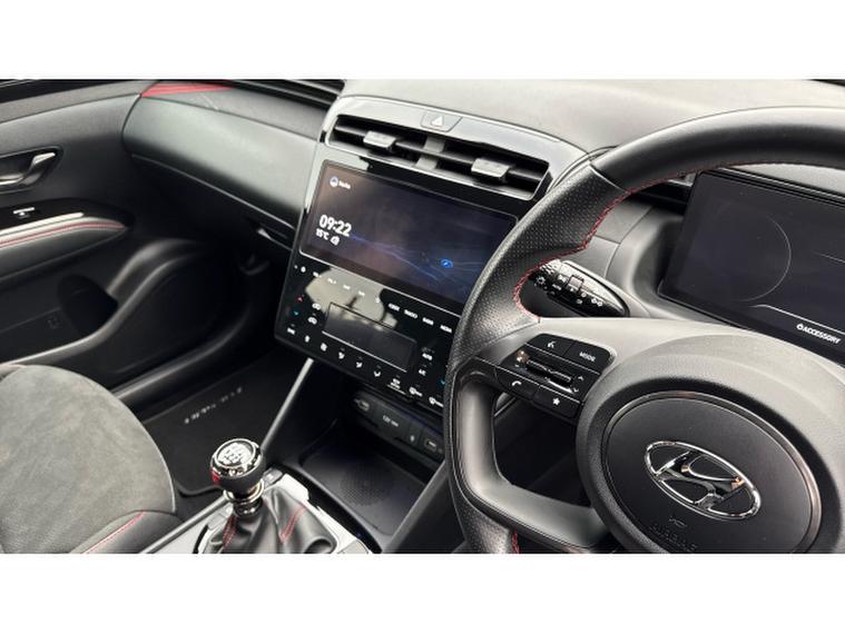 Hyundai TUCSON 1.6 TGDi N Line 5dr 2WD Petrol Estate, , Sporty styling meets everyday practicality in the 2021 Hyundai Tucson 1.6 TGDi N Line. This striking 5-door estate offers bold design cues inspired by Hyundais performance range, including aggressive front and rear bumpers, 19 alloy wheels, and N Line badging. Powered by a responsive 1.6L turbocharged petrol engine with front-wheel drive, it delivers a smooth and confident drive. Inside, enjoy a premium cabin with sporty touches like red stitching, leather and suede seats, and a leather-wrapped steering wheel. Tech highlights include an 8 touchscreen with Apple CarPlay/Android Auto, rear parking sensors, reversing camera, and dual-zone climate control. With generous boot space, sharp looks, and a comfortable ride, the Tucson N Line is ideal for families or drivers seeking a stylish, well-equipped SUV with a sporty edge.