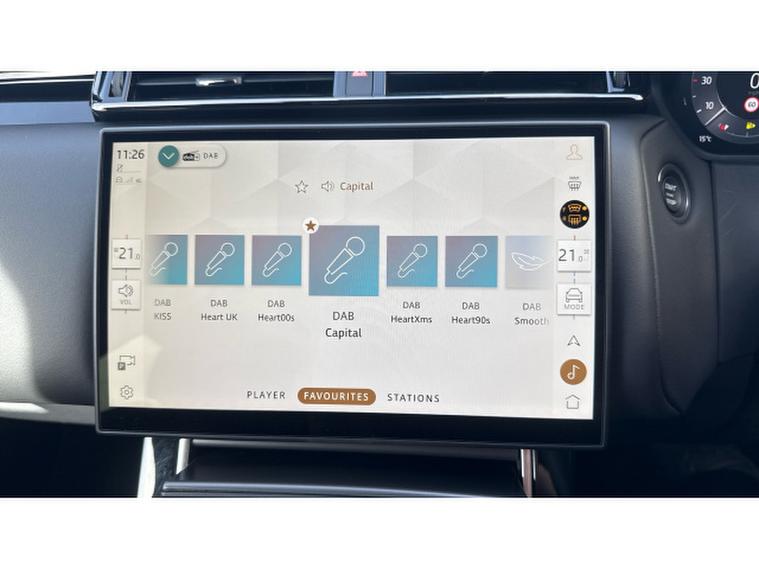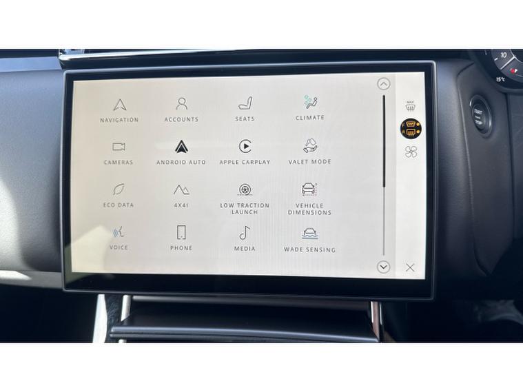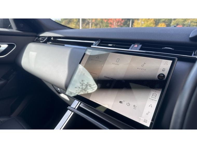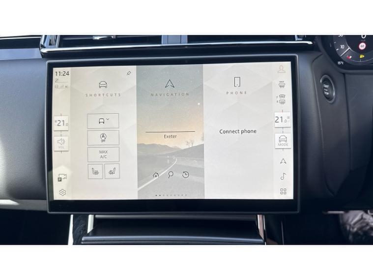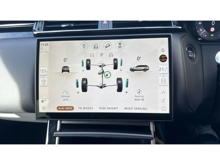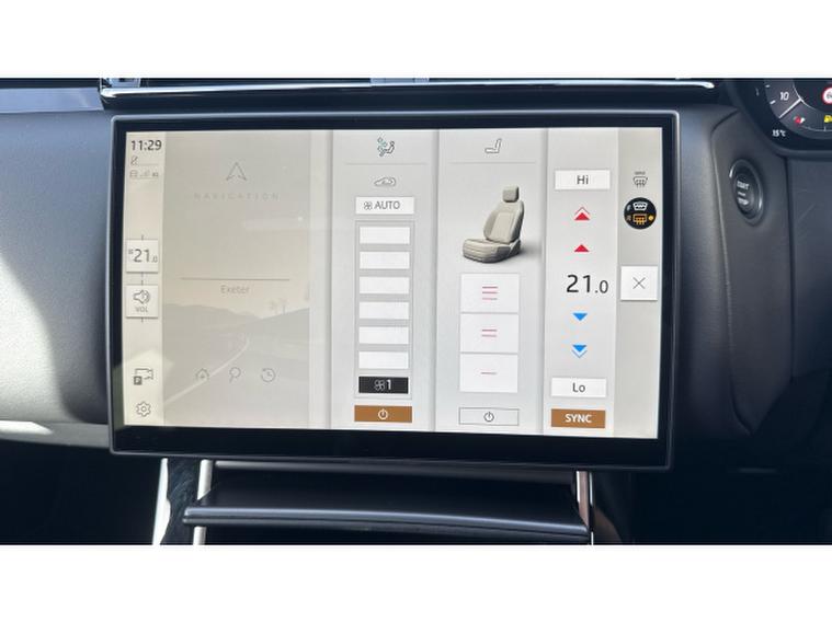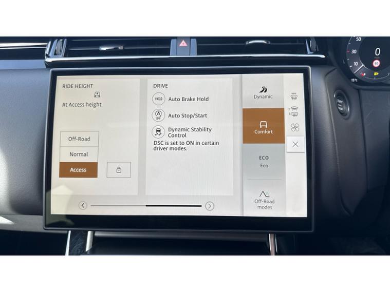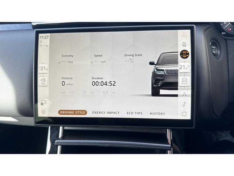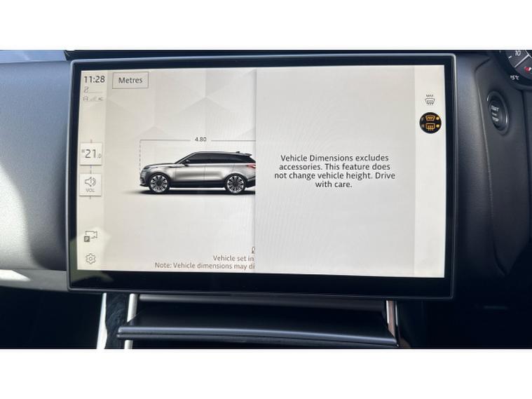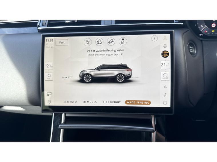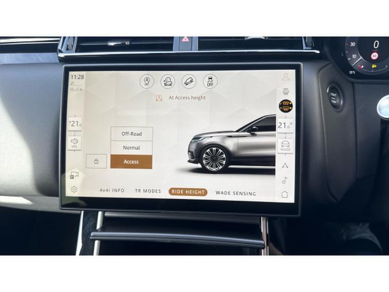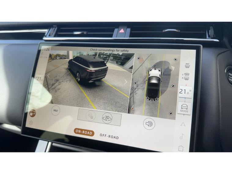 Technology is where the Velar truly excels. The 3D surround camera system gives a complete view around the vehicle, making parking and tight manoeuvres easy and stress-free. Park Assist takes this further by automatically guiding you into spaces with precision. Adaptive cruise control with steering assist ensures a relaxed motorway drive, maintaining a safe distance while subtly helping to keep the car centred in its lane. The head-up display projects key information directly into your line of sight, keeping your focus on the road ahead.