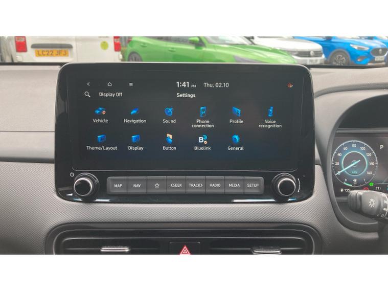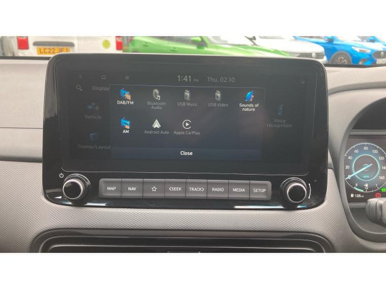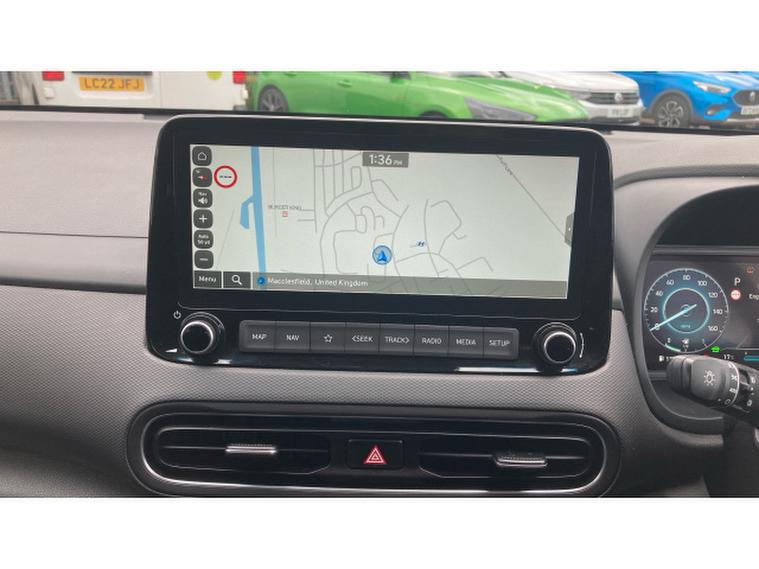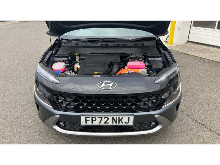 Hyundai KONA 1.6 GDi Hybrid Premium 5dr DCT Hybrid Hatchback, , This Kona looks fantastic in the 'Abyss Black', especially when paired with the stylish diamond cut alloys and dark rear privacy glass. Front and rear sensors are complimented by a rear camera for ultimate ease when parking, while heated seats provide comfort in the colder months. The central screen boasts Apple CarPlay/Android Auto, sat nav, DAB and Bluetooth so you can stream your favourite music and pick the best route. Handy features such as auto lights, auto wipers and cruise control take the hassle out of day to day driving.
