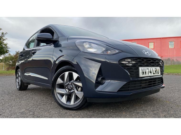 Hyundai i10 1.0 [63] Advance 5dr [Nav] Petrol Hatchback, , The Hyundai i10 1.0 [63] Advance 5dr [Nav] Petrol Hatchback is a fantastic choice for anyone seeking a compact, efficient, and practical city car. Finished in a sleek grey, this particular model is remarkably low mileage, having covered just 1, 512 miles since its registration in 2024/74, making it almost brand new. Powered by a 1.0-litre petrol engine delivering 63 horsepower, it offers excellent fuel efficiency and easy maneuverability, perfect for urban driving and tight parking spaces. The Advance trim level adds a touch of sophistication and convenience, including an integrated navigation system to help you find your way effortlessly. Safety is a priority with this Hyundai i10, featuring Isofix child seat preparation for secure and easy installation of child seats, making it a great family-friendly option. Additional features include air conditioning, Bluetooth connectivity, electric front windows, and a touchscreen infotainment system, ensuring comfort and connectivity on the go. The 5-door hatchback layout enhances practicality, offering easy access to the rear seats and decent boot space for a car of its size. Its low insurance group rating also makes it economical to run, especially appealing to new drivers or those looking to save on costs. Overall, the Hyundai i10 Advance is a stylish, efficient, and well-equipped small car ideal for city life.