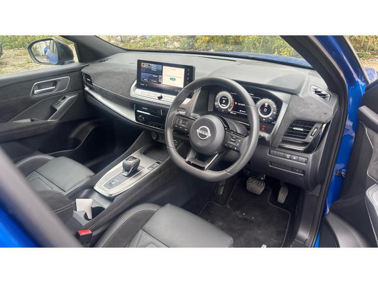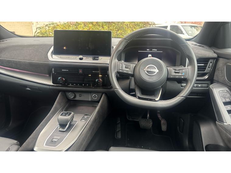 The N-Design trim adds a dynamic edge with sleek black exterior accents, 19 gloss black alloy wheels, and exclusive interior touches such as quilted leather-effect upholstery and a leather-wrapped steering wheel. The Xtronic continuously variable automatic transmission ensures smooth and responsive gear changes, enhancing comfort during city drives and motorway cruising.