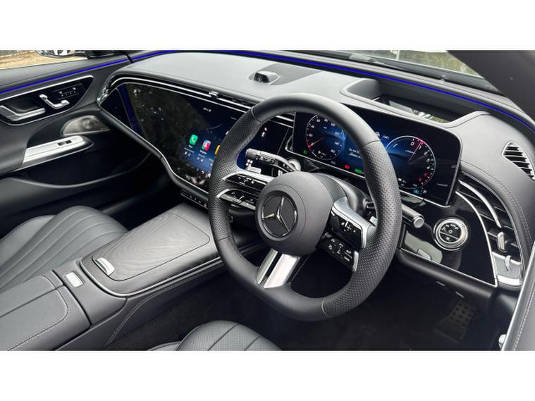 Practicality is where this E-Class Estate shines. The EASY-PACK tailgate and HANDS-FREE ACCESS make loading effortless, while the trailer coupling with ESP trailer stabilisation offers genuine versatility for towing. Inside, comfort reaches new heights with black climatised leather memory seats, a heated steering wheel, and a panoramic sliding sunroof that floods the cabin with light.
