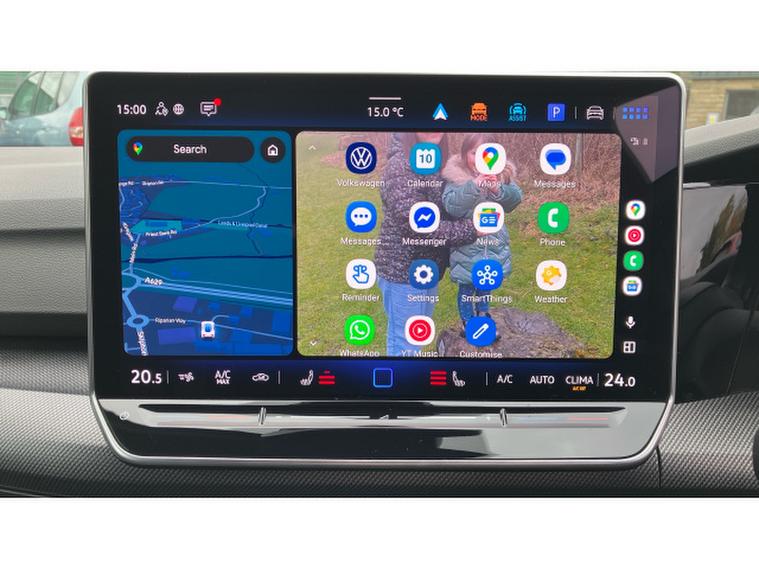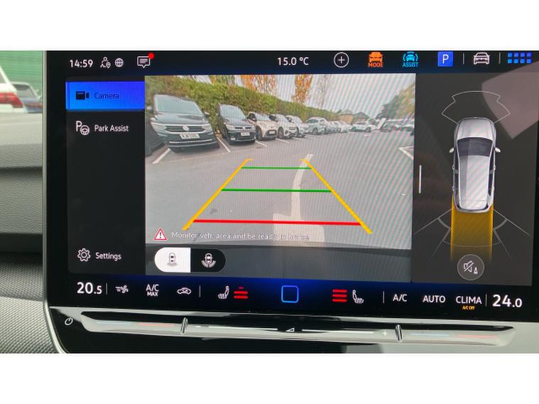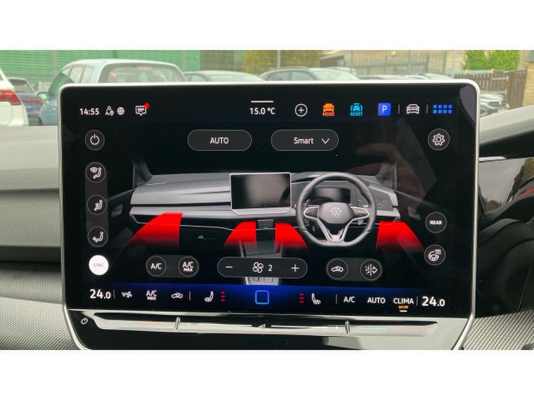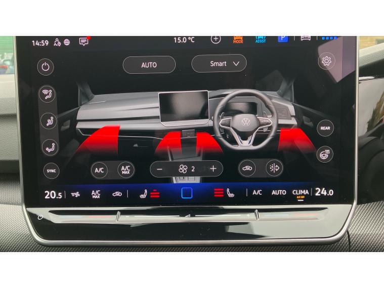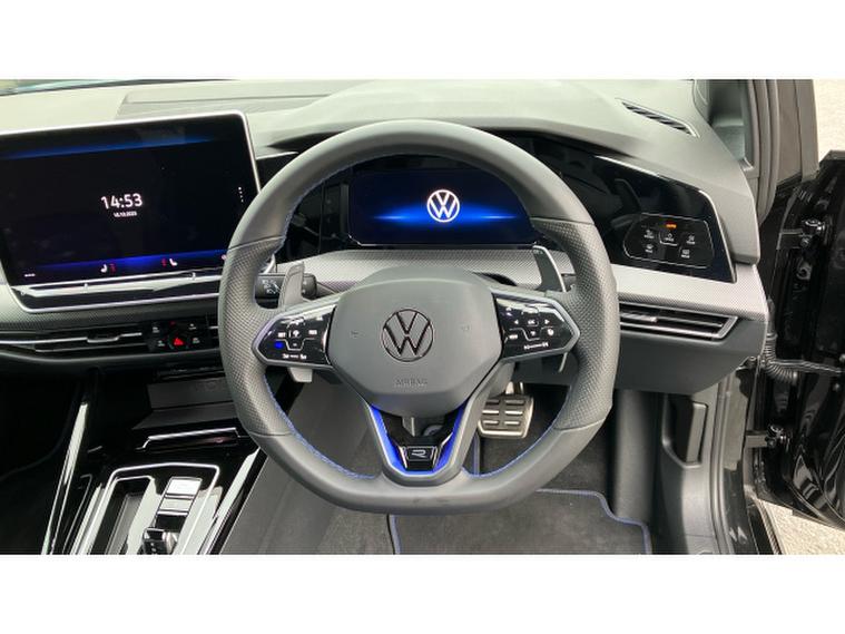As standard, it comes with diamond cut alloy wheels, touch screen media with satellite navigation, Apple Car Play, Android Auto, Bluetooth and DAB radio, reversing camera with front and rear parking sensors, digital drivers cockpit, adaptive cruise control, lane assist, dual zone climate control with air conditioning, heated steering wheel, half leather R sports seats, keyless entry, auto lights and wipers, honeycomb LED front fog lights, Matrix LED head lights with full light bar and illuminated VW badge, electronic handbrake, privacy glass, and much more.