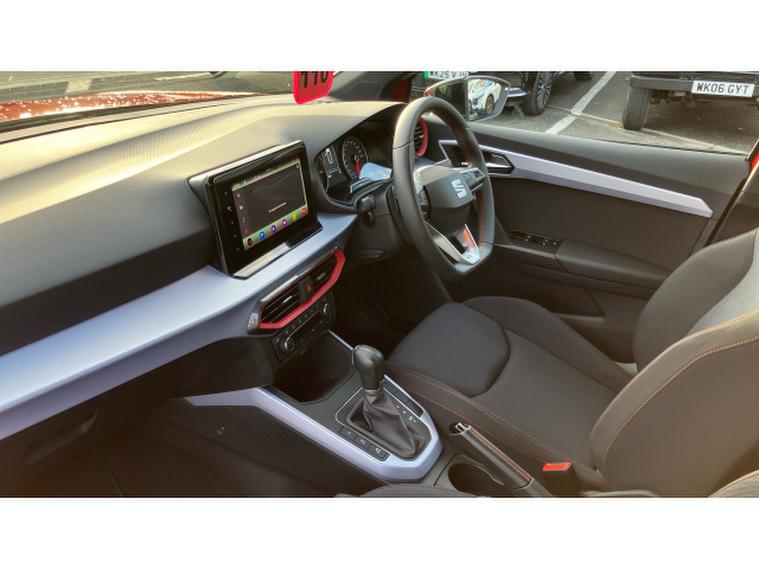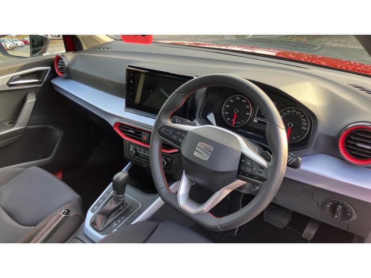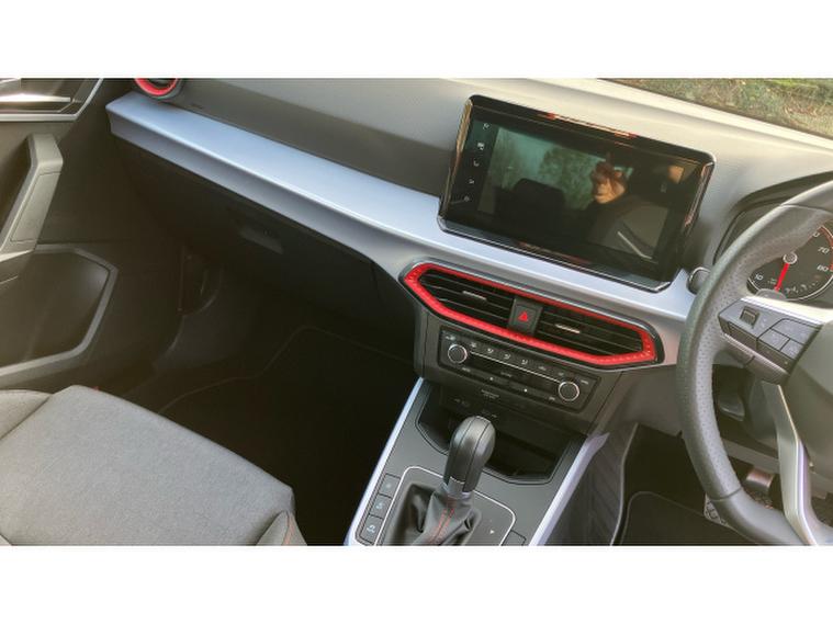 Being the FR trim, this Arona leans into its sporty side with a sharper suspension setup, sporty styling touches, and a well-equipped interior. Inside, youll find supportive sports seats, a flat-bottomed steering wheel, dual-zone climate control, touchscreen infotainment with smartphone connectivity, and LED lighting throughout.