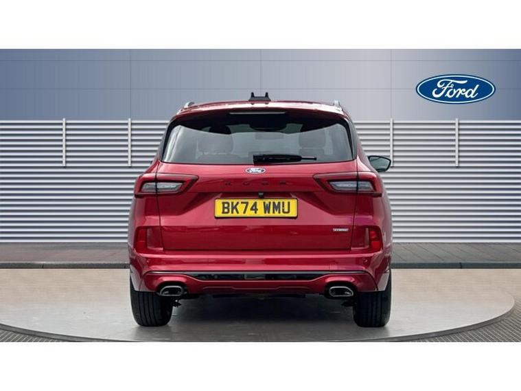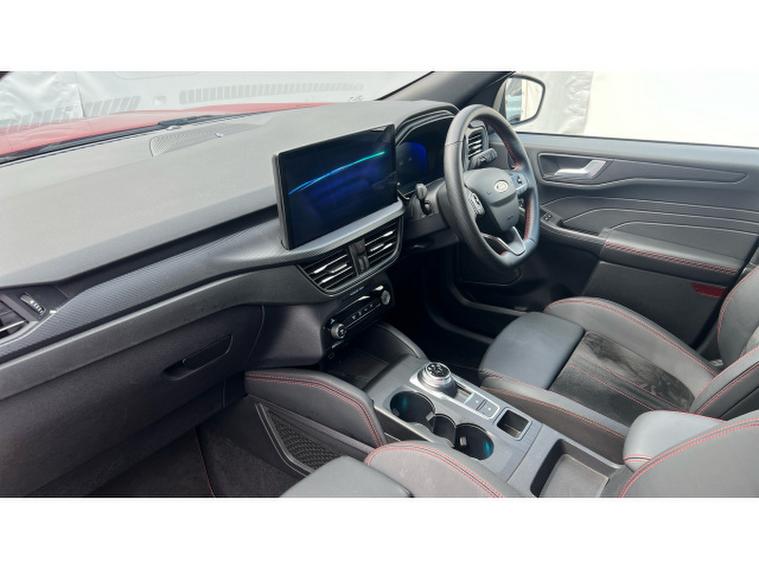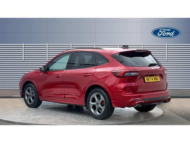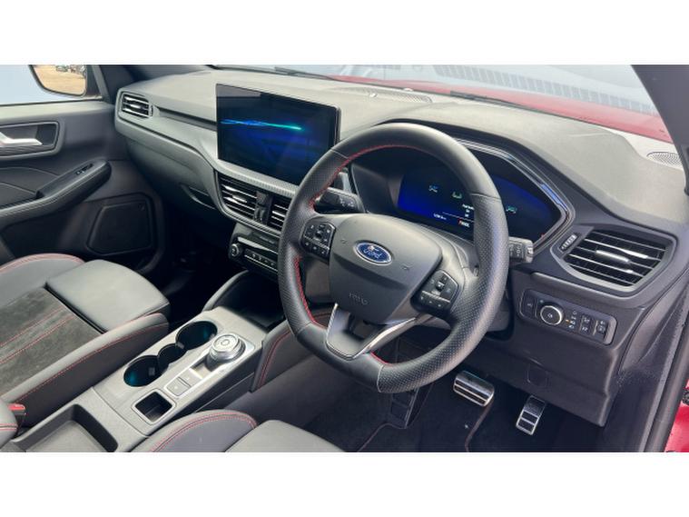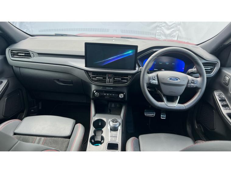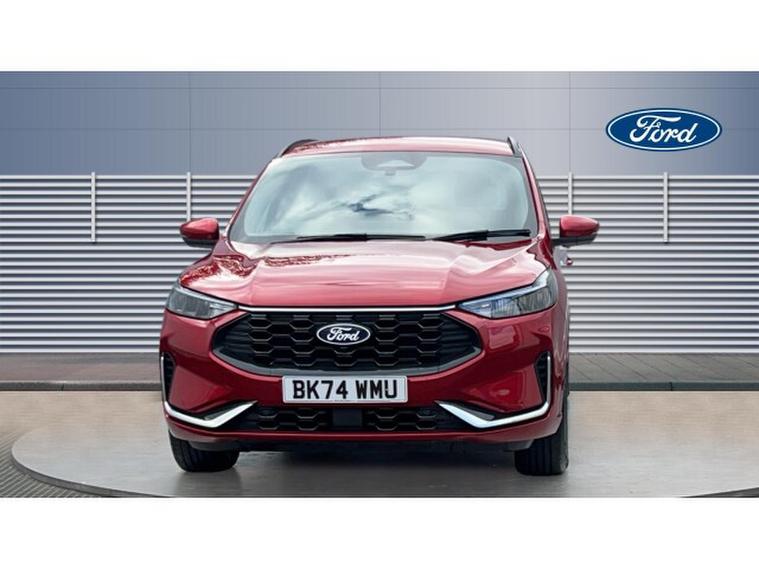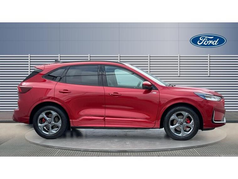 Ford Kuga 2.5 FHEV ST-Line 5dr CVT Hybrid Estate, , Gloucester Ford have this Ford Kuga 2.5 FHEV ST-Line CVT finished in Fantastic Red. This Kuga 2.5 FHEV ST-Line CVT in Fantastic Red is a striking combination of bold design, hybrid efficiency, and advanced technology, perfectly crafted for drivers who value both performance and sophistication. With its confident stance and sporty personality, the Kuga ST-Line delivers a driving experience that is as engaging as it is efficient. Powered by Fords refined 2.5-litre Full Hybrid Electric Vehicle (FHEV) powertrain, the Kuga effortlessly blends petrol and electric power for smooth, responsive performance and impressive fuel economy. The intelligent CVT automatic transmission ensures seamless acceleration, while the hybrid system optimises energy use, making every journey quieter, cleaner, and more economical. Whether cruising on the motorway or navigating city traffic, the Kuga FHEV delivers effortless performance with minimal environmental impact. Visually, the Fantastic Red exterior gives the Kuga a commanding and athletic presence, accentuated by its 18-inch alloy wheels and the sporty design cues of the ST-Line trim. The sculpted lines, aerodynamic contours, and distinctive grille all convey a sense of motion and modernity even when the car is stationary. Inside, the cabin combines comfort, technology, and sport-inspired detailing. The SYNC 4 infotainment system brings cutting-edge connectivity with a sleek touchscreen interface, wireless smartphone integration, and real-time navigation. Practicality meets peace of mind with front and rear parking sensors and a 360-degree camera, offering exceptional visibility and confidence when manoeuvring in tight spaces. The Ford Kuga ST-Lines dynamic suspension and precise handling make it as enjoyable to drive as it is to look at, while its spacious interior and premium materials ensure comfort for all passengers. Overall, the Ford Kuga 2.5 FHEV ST-Line CVT in Fantastic Red stands out as a stylish, efficient, and intelligent SUV that perfectly blends innovation, practicality, and driving pleasure.