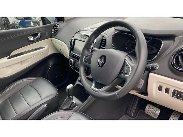 Renault Captur 1.2 TCE 120 Signature S Nav 5dr EDC Petrol Hatchback, , Design is the Capturs number one selling point, and its suitably eye-catching. Cars from mid-2017 onwards have a refreshed look, with trademark C-shaped LED running lights in the bumper, some sleek lines, and bold colour options. All models get alloy wheels and LED running lights front and back, while Dynamique S Nav models upwards get two-tone exterior paint, and rear parking sensors. The Captur may be at the more affordable end of the market, but that doesnt mean the interior is a chore to sit in. Quite the opposite. Renault has used the 2017 update to improve the quality of materials, especially around the eye-line, so there are soft touch plastics on the doors and dashboard that elevate it above several rivals. In terms of quality, its streets ahead of Vauxhalls Crossland X. The seating position and steering wheel adjust enough to fit most drivers, although in cars fitted with an armrest, its a bit of a faff to get to the seat adjustment controls next to the transmission tunnel. Higher end cars have revised seats over the base-trim Captur, and they should be more than comfortable enough for hours of driving.