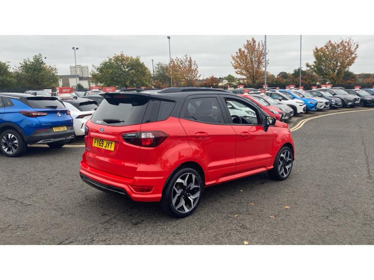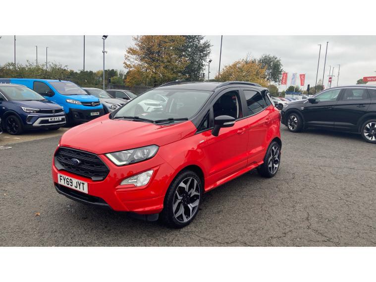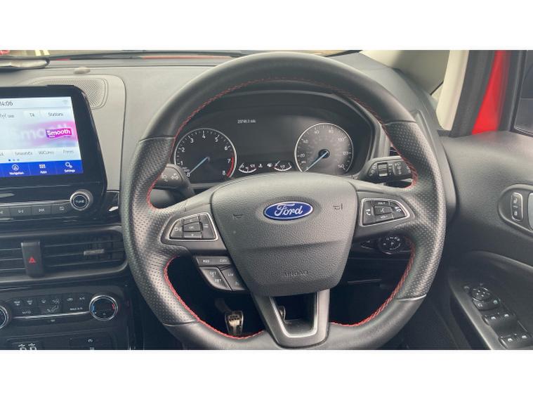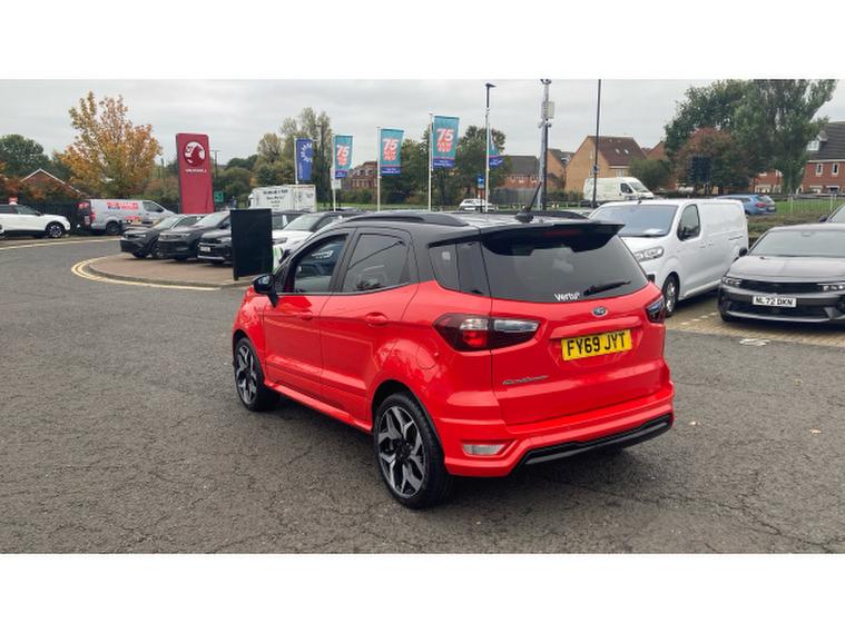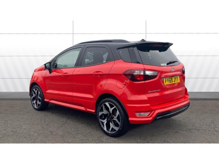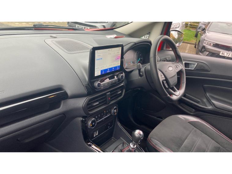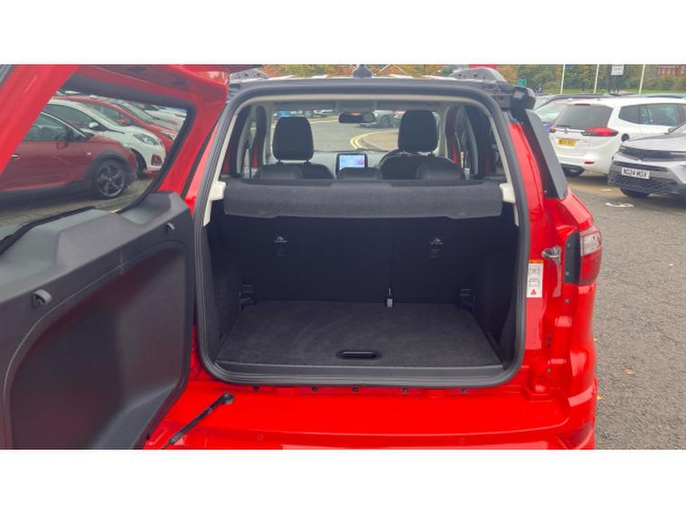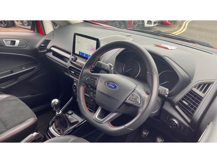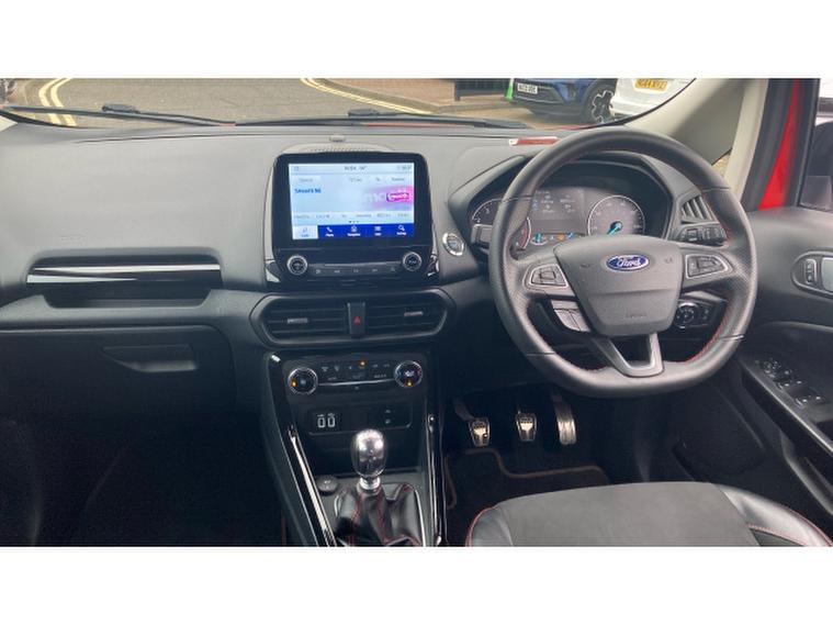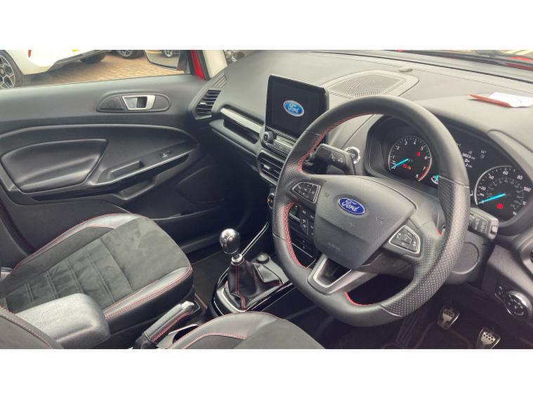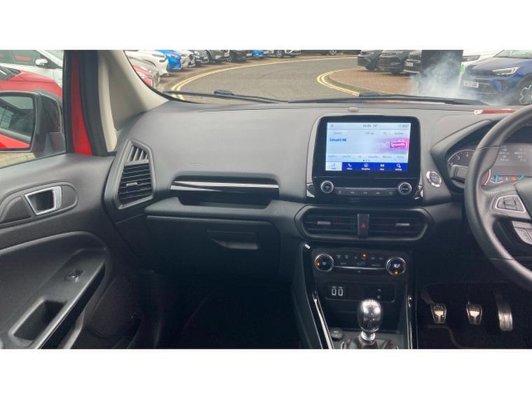 Ford EcoSport 1.0 EcoBoost 125 ST-Line 5dr Petrol Hatchback, , The 2019 Ford EcoSport Hatchback 1.0 EcoBoost 125 ST-Line 5dr combines sporty styling with practicality and efficiency. Its award-winning 1.0-litre EcoBoost petrol engine delivers lively performance and excellent fuel economy, ideal for both city and motorway driving. The ST-Line trim adds dynamic flair with a sporty body kit, 17-inch alloy wheels, and a distinctive interior featuring sports seats and red stitching. A touchscreen infotainment system with navigation, Apple CarPlay, and Android Auto keeps you connected on the move, while rear parking sensors and cruise control add convenience. Elevated ride height and compact dimensions make it easy to handle in all environments, and the flexible boot space enhances everyday usability. Offering a balance of performance, style, and practicality, the EcoSport ST-Line is a smart and versatile compact SUV for modern drivers.