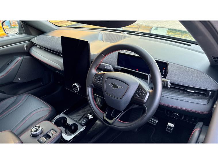 Ford Mustang Mach-E 258kW Extended Range 91kWh AWD 5dr Auto Electric Estate, , This 2023 Ford Mustang Mach-E Extended Range offers an impressive electric driving experience with its Four Wheel Drive system and a substantial 99 kWh battery, providing a maximum range of 335 miles. This model benefits from convenient features such as a Wireless Device Charging Pad, Front and Rear Parking Sensors, and a 360 Degree Camera to assist with manoeuvring. Entry is made simple with the E-Latch Keyless Entry System, which includes B-Pillar Keypad Access, and for added comfort on colder days, it boasts a Heated Steering Wheel.