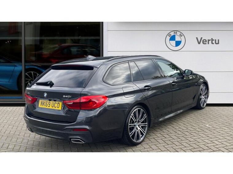 BMW 5 Series 540i xDrive M Sport 5dr Auto Petrol Estate, , The 2019 BMW 5 Series 540i xDrive M Sport in Sophisto Grey now available and ready to test drive at Vertu BMW Durham. This 5 Series is a luxurious saloon with exceptional comfort for all on board to enjoy. Perfect for daily driving with excellent fuel efficiency and a wealth of features to enhance performance, safety and driving ease. Diving into the standout features The M Sport Pro Package with 20 Inch Alloy Wheels that perfectly contrast the Sophisto Grey finish. The M Sport Suspension provides a wonderfully smooth ride as you tackle city streets or motorways. The M Sport Leather Steering Wheel adds comfort and total control behind the wheel. The M Sport Exterior Styling provides a stylish exterior trim with the world-renowned M Sport Badges. The M Sport Brakes are not only aesthetically pleasing but offer excellent stopping power you can rely on.