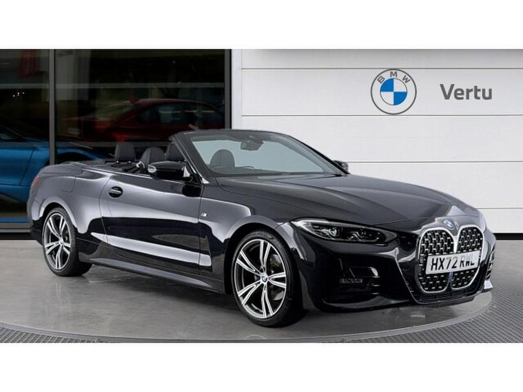 BMW 4 Series 420i M Sport 2dr Step Auto Petrol Convertible, , The 2022 BMW 4 Series 420i xDrive Convertible in Black Sapphire is now available and ready to test drive at Vertu BMW Sunderland. This 4 Series is a sleek and stylish coupe with brilliant performance and a range of helpful features that enhance comfort, safety and daily driving ease. Diving into the standout features The M Sport Package with 19 Inch Double-Spoke Alloy Wheels that perfectly contrast the Black Sapphire finish. The M Sport Suspension lets you adjust your suspension to suit your driving needs for endless comfort as you tackle city streets or motorways. The M Sport Leather Steering Wheel adds comfort and total control behind the wheel. The M Sport Exterior Styling provides a stylish exterior trim with the world-renowned M Sport Badges.