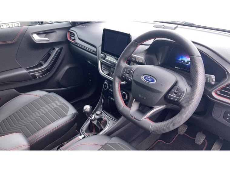 Ford Puma 1.0 EcoBoost Hybrid mHEV ST-Line X 5dr Petrol Hatchback, , A stylish and efficient compact SUV that combines mild-hybrid technology, sporty design, and practical everyday usability. Powered by a 1.0-litre EcoBoost petrol engine with mild-hybrid assistance, this Puma delivers smooth, responsive performance, excellent fuel economy, and reduced emissions, making it ideal for both city commutes and longer journeys. The ST-Line X trim enhances its sporty and premium appeal with 17-inch alloy wheels, LED headlights, ST-Line body styling, rear privacy glass, and striking exterior accents, ensuring a bold and confident road presence. Inside, the cabin is driver-focused and well-equipped, featuring part-leather sports seats, a leather-trimmed flat-bottom steering wheel, ambient lighting, and high-quality finishes throughout. Technology highlights include Fords SYNC 3 infotainment system with an 8-inch touchscreen, satellite navigation, Apple CarPlay, Android Auto, Bluetooth, and DAB radio for seamless connectivity and entertainment. Convenience features such as dual-zone climate control, keyless entry, cruise control, and rear parking sensors enhance usability, while safety is prioritised with lane-keeping assist, pre-collision assist, and multiple airbags. Presented in excellent condition with low mileage and a full service history, this 2021 Ford Puma ST-Line X offers outstanding value.