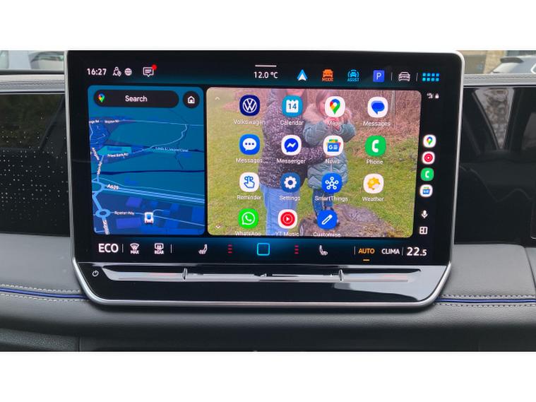 As standard it comes with diamond cut alloy wheels, Intelligent Matrix dynamic LED head and tail lights, interactive touch screen media and system control with a digital drivers cockpit, electronic smart heating controls with tri-zone climate control, satellite navigation, Apple car Play, Android Auto, DAB radio, Bluetooth, wireless inductive phone charging, park assist with front & rear parking sensors, heated steering wheel, electric heated massaging sports seats, keyless entry, adaptive cruise control with lane assist, and travel assist, R-Line sports seats, privacy glass, sports body styling, roof rails, plus so much more.