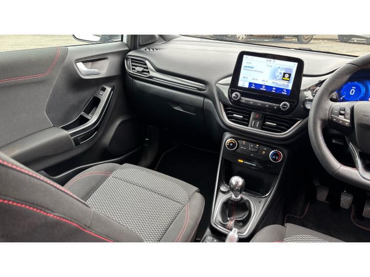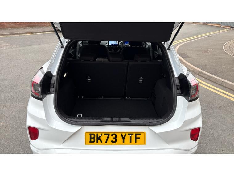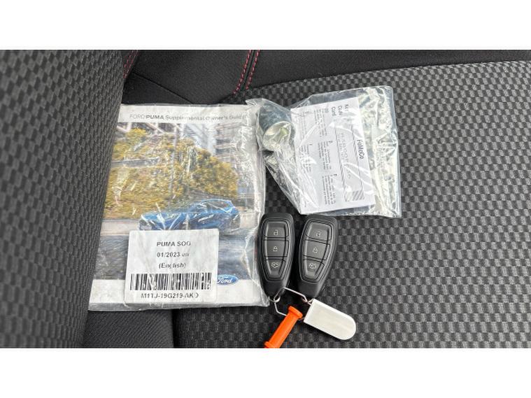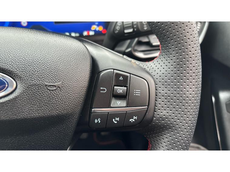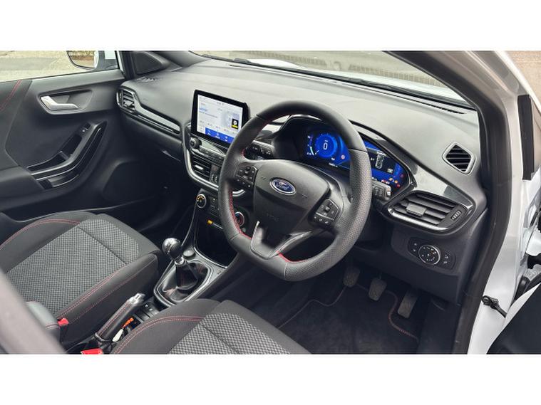 Inside, the ST-Line cabin is a masterclass in modern design and driver-focused comfort, featuring sports-style seats with red stitching, a leather-trimmed flat-bottom steering wheel, and an intuitive digital instrument cluster that puts everything you need right at your fingertips. Enjoy seamless connectivity with the integrated, Sync 3 infotainment system which includes Apple CarPlay and Android Auto, as well as Satellite Navigation and much more. N top of that youll find a whole host of smart driver assistance features keeping you safe, connected and on the move, always! The Ford Puma ST-Line is the ultimate fusion of energy, intelligence, and unmistakable style.