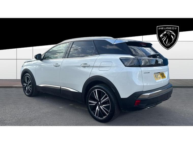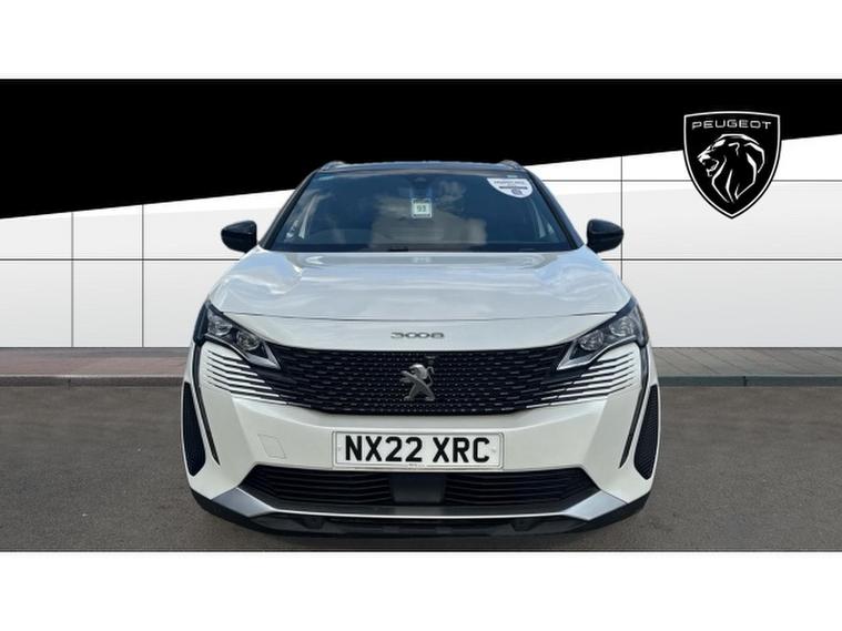 The bold exterior design reflects Peugeots modern styling philosophy, with sharp lines, LED lighting, and striking GT details that exude confidence and sophistication. The white paintwork enhances its premium appearance, complemented by distinctive alloy wheels and chrome accents that give the 3008 a commanding presence on the road.