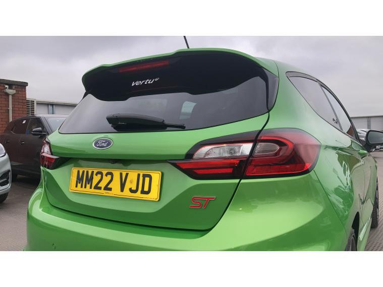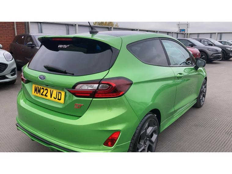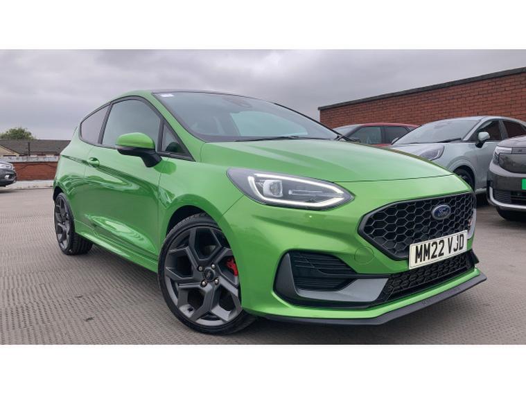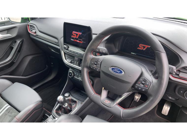 Ford Fiesta ST 1.5 EcoBoost ST-3 3dr Petrol Hatchback, , The ultimate hot hatch that blends exhilarating performance, sharp handling, and premium features. Powered by a 1.5-litre EcoBoost petrol engine producing an impressive 200PS, this Fiesta ST-3 delivers thrilling acceleration, precise cornering, and an engaging driving experience that has made it one of the most celebrated performance hatchbacks on the road. The ST-3 trim enhances its sporty character with 18-inch alloy wheels, aggressive ST body styling, rear spoiler, and LED headlights, giving it a bold and athletic presence. Inside, the driver-focused cabin features part-leather Recaro sports seats, a flat-bottom ST steering wheel, ambient lighting, and high-quality finishes that combine comfort with performance appeal. Technology highlights include Fords SYNC 3 infotainment system with an 8-inch touchscreen, satellite navigation, Apple CarPlay, Android Auto, Bluetooth, and premium B&O audio for immersive sound. Additional convenience features such as climate control, keyless entry, rear parking sensors, and cruise control ensure everyday usability, while advanced safety systems including lane-keeping assist and stability control inspire confidence. Presented in excellent condition with low mileage and a full service history, this 2022 Ford Fiesta ST-3 3dr offers outstanding value for enthusiasts.