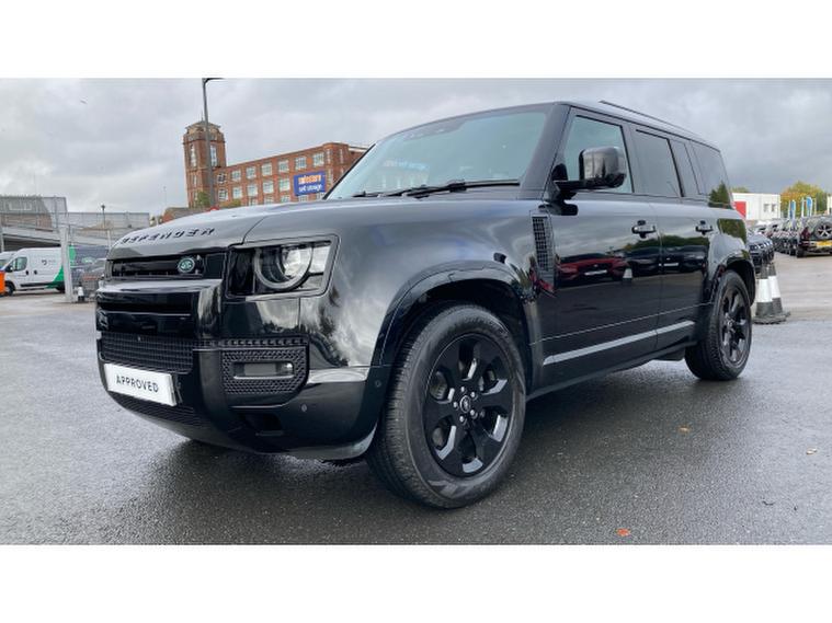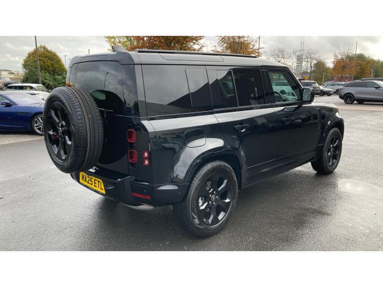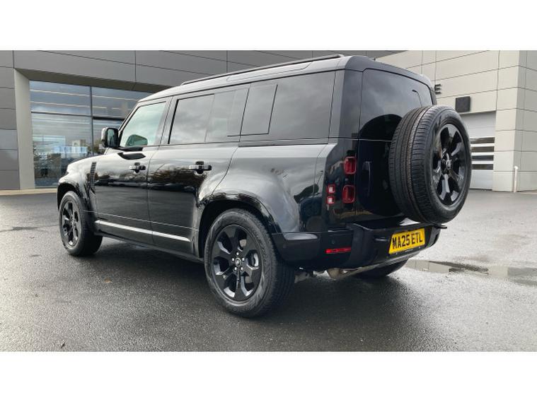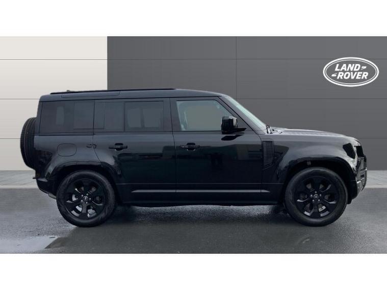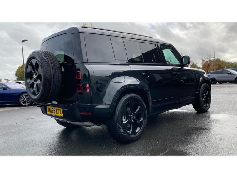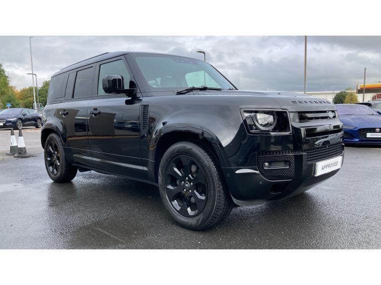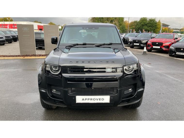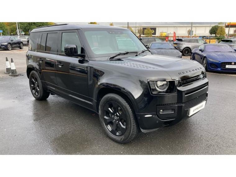 Land Rover Defender 3.0 D250 X-Dynamic HSE 110 5dr Auto Diesel Estate, , Vertu JLR Bolton are proud to offer this stunning Defender 3.0 D250 X-Dynamic HSE 110 finished in Santorini Black metallic with matching ebony Windsor leather interior. This one owner car has been immaculately looked after by its former owner and comes with a stunning specification which includes optional 20 inch gloss black alloys, privacy glass and extended black pack. Standard features include sliding glass panoramic sunroof, touchscreen Sat Nav with Pivi Pro Navigation, 3D surround camera, parking sensors, adaptive cruise control, dual zone climate control, keyless entry, heated windscreen, Apple car play, terrain response, hill descent control, push button start, Isofix, trip computer, interactive driver display, LED headlights, auto lights and wipers, steering wheel audio controls, Meridian sound system, electric memory seats, power fold mirrors, cubby box, heated steering wheel, stop/start and much more. This car is ready to view, test drive and drive away today and comes as part of the Approved JLR programme which includes balance of manufacturer warranty and roadside assistance until March 2028, MOT test warranty, 165 multi point inspection and complimentary experience day as part of purchase.