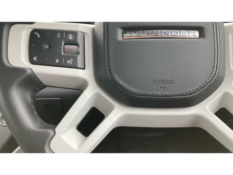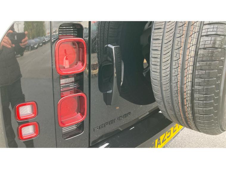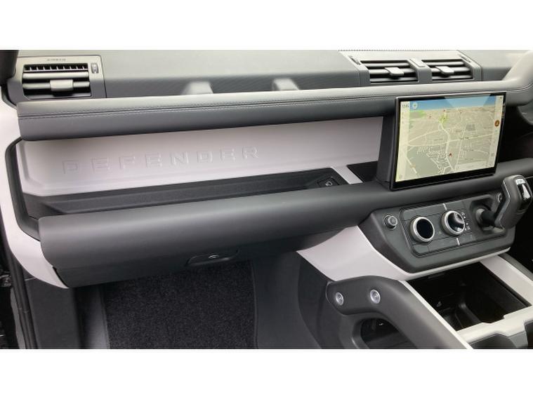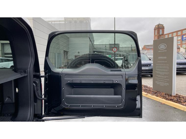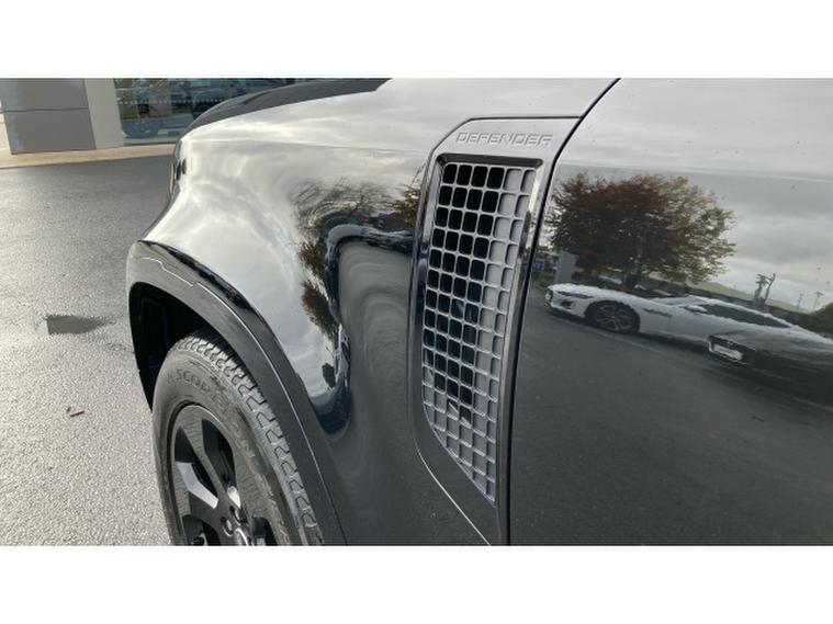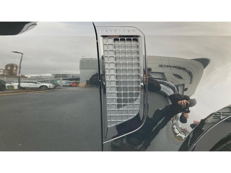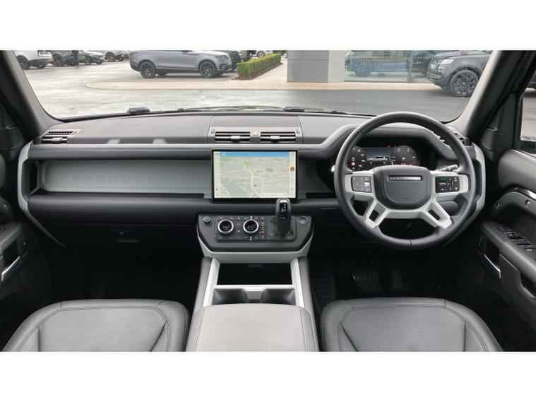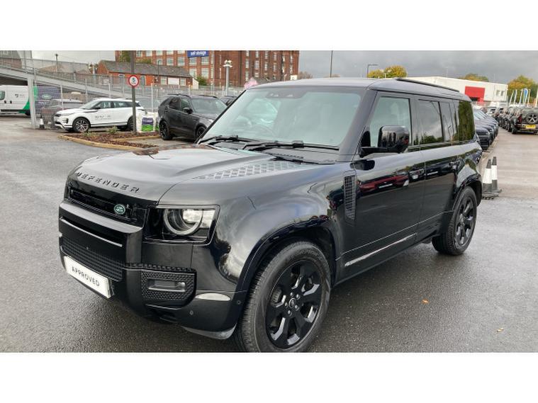 Land Rover Defender 3.0 D250 X-Dynamic HSE 110 5dr Auto Diesel Estate, , Vertu JLR Bolton are proud to offer this stunning Defender 3.0 D250 X-Dynamic HSE 110 finished in Santorini Black metallic with matching ebony Windsor leather interior. This one owner car has been immaculately looked after by its former owner and comes with a stunning specification which includes optional 20 inch gloss black alloys, privacy glass and extended black pack. Standard features include sliding glass panoramic sunroof, touchscreen Sat Nav with Pivi Pro Navigation, 3D surround camera, parking sensors, adaptive cruise control, dual zone climate control, keyless entry, heated windscreen, Apple car play, terrain response, hill descent control, push button start, Isofix, trip computer, interactive driver display, LED headlights, auto lights and wipers, steering wheel audio controls, Meridian sound system, electric memory seats, power fold mirrors, cubby box, heated steering wheel, stop/start and much more. This car is ready to view, test drive and drive away today and comes as part of the Approved JLR programme which includes balance of manufacturer warranty and roadside assistance until March 2028, MOT test warranty, 165 multi point inspection and complimentary experience day as part of purchase.