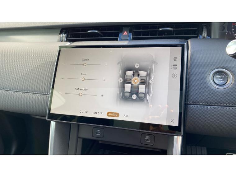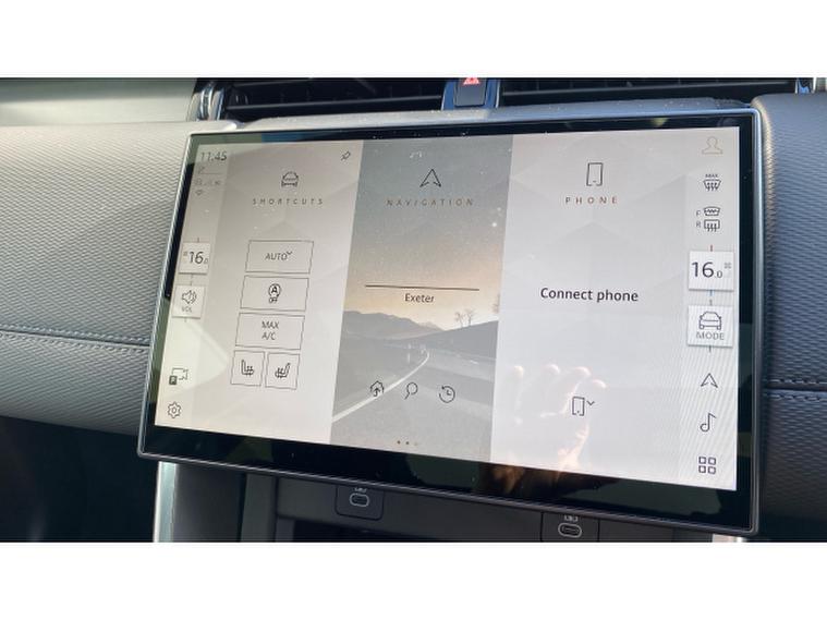 From every angle, it exudes modern Land Rover confidence. The 20-inch Style 5089 gloss black alloy wheels and privacy glass give it a purposeful, premium stance, while the fixed panoramic sunroof floods the interior with natural light, creating an airy, sophisticated cabin ambience.