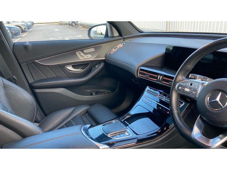 The EQC 400 represents the future of performance powered by dual electric motors producing instant torque for smooth, effortless acceleration. Its AMG Line Premium Plus styling gives it an unmistakable presence on the road, with dynamic AMG body design, striking LED headlights, and sleek aerodynamic lines that blend strength with sophistication. Step inside and youre greeted by cutting-edge innovation and comfort. The MBUX Multimedia Navigation System with Apple CarPlay ensures seamless connectivity and intelligent route guidance, making every journey more intuitive and engaging.
