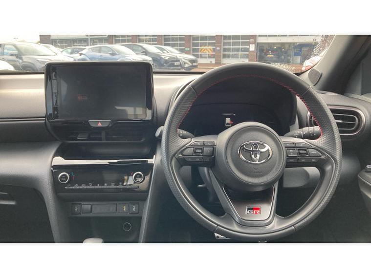 Inside, the cabin combines premium comfort with cutting-edge technology. Enjoy half-leather sports seats, aluminium pedals, and a leather GR steering wheel that make every journey engaging. The intuitive Toyota Smart Connect system features a 9 multimedia touchscreen, Apple CarPlay & Android Auto, and satellite navigation, keeping you seamlessly connected wherever you go.