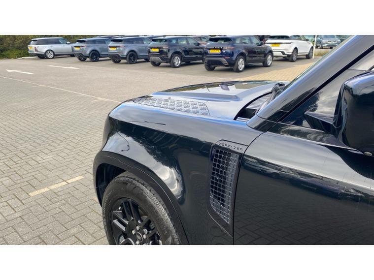 Land Rover Defender 3.0 D250 X-Dynamic SE 110 5dr Auto Diesel Estate, , Vertu JLR Truro are delighted to offer this JLR Approved Used 2022 Land Rover Defender 3.0 D250 X-Dynamic SE 110 5dr Auto Estate, finished in striking Santorini Black Metallic with Ebony Leather interior. Combining Land Rovers legendary off-road capability with refined on-road comfort, the Defender 110 delivers confident all-terrain performance, advanced technology, and spacious practicality for everyday use.