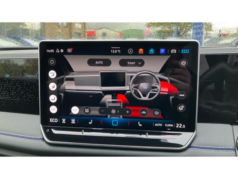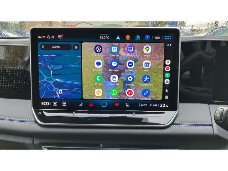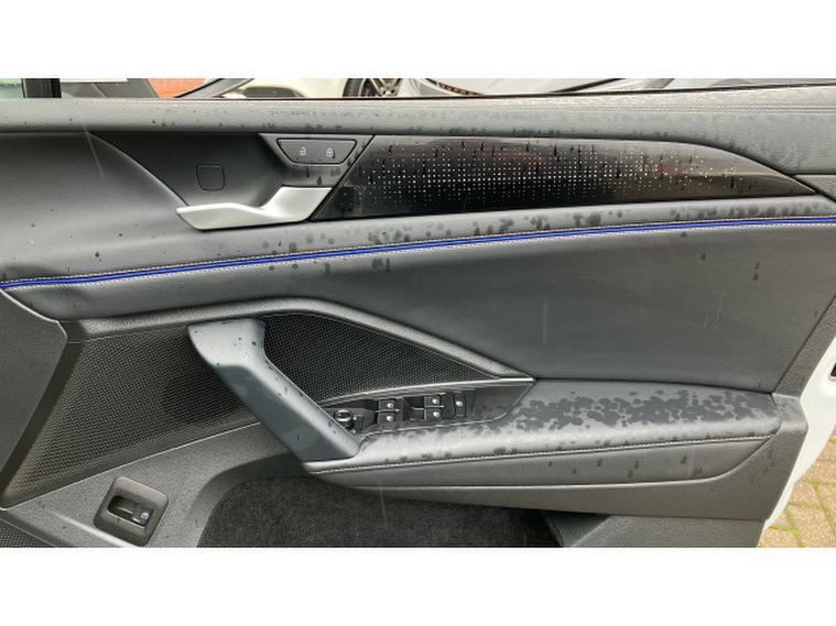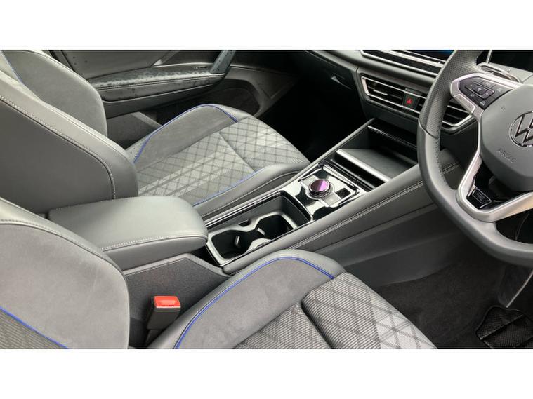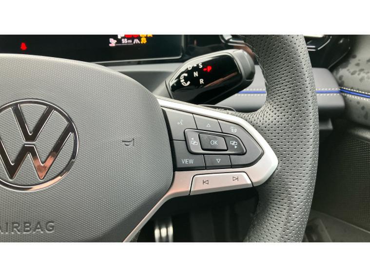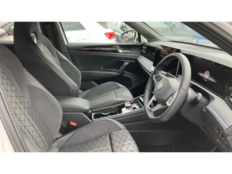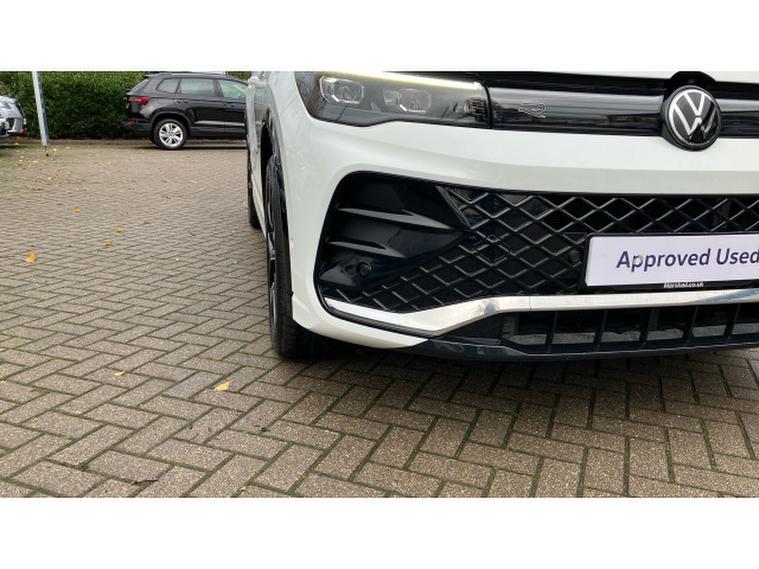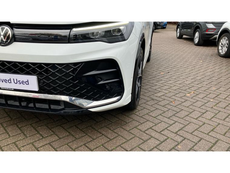 As standard it comes with diamond cut alloy wheels, touch screen media with satellite navigation, Apple Car Play, Android Auto, Bluetooth and DAB radio, overhead & surround cameras with front and rear parking sensors, adaptive cruise control, lane assist, tri-zone climate control with air conditioning, heated half leather R-Line sports seats seats, heated steering wheel, keyless entry, electronic handbrake, power folding wing mirrors, auto lights and wipers, front fog lights, LED lights, dynamic indicators, digital drivers cockpit, privacy glass, roof bars, and much more.