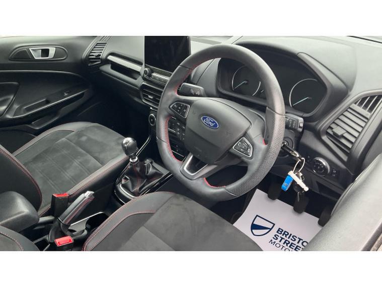 Ford EcoSport 1.0 EcoBoost 140 ST-Line 5dr Petrol Hatchback, , This gorgeous metallic Solar Silver Ecosport isn't just a stunning hatchback it also boasts A FULL SERVICE HISTORY & JUST ONE PREVIOUS OWNER! The car also benefits from APPLE CARPLAY & ANDROID AUTO meaning whether you want to listen to incoming messages, listen to the latest songs on Spotify or get live map updates this feature is definitely for you - AIR CONDITIONING to keep you cool in the summers and warm you up in these cold winter days this car won't be here long! The Ford EcoSport 1.0 EcoBoost 140 ST‑, Line combines sporty style with practical crossover versatility. Its 1.0‑, litre turbo engine delivers lively 140 PS performance, responsive handling, and efficient running. The ST‑, Line trim adds dynamic exterior styling, 17‑, inch alloys, and a sporty, well‑, finished interior with contrast stitching. Elevated driving position enhances visibility, while the 5‑, door layout and 356‑, litre boot provide practical everyday usability. Agile, efficient, and stylish, the EcoSport ST‑, Line is ideal for those seeking a compact SUV that blends performance, comfort, and versatility. All our vehicles at Vertu Motors come fully prepared with our peace of mind Main Dealer guarantee. Every vehicle is fully prepared both mechanically and cosmetically up to the highest standard which even includes having any tyre replaced that has less than 3mm tread depth (legal limit is 1.6mm). We ensure that you will have a minimum of 2 keys and to give you even further reassurance we also supply you with a 3 months complimentary warranty and a 14-day money back guarantee. Our vehicles also come with a full HPI vehicle check assuring you that your new vehicle will have no registered accident claims reported, or any outstanding finance, it also shows the vehicle has not been imported. **DUE TO HIGH STOCK TURNOVER WE RECOMMEND RESERVING THE CAR ONLINE TO AVOID DISAPPOINTMENT **